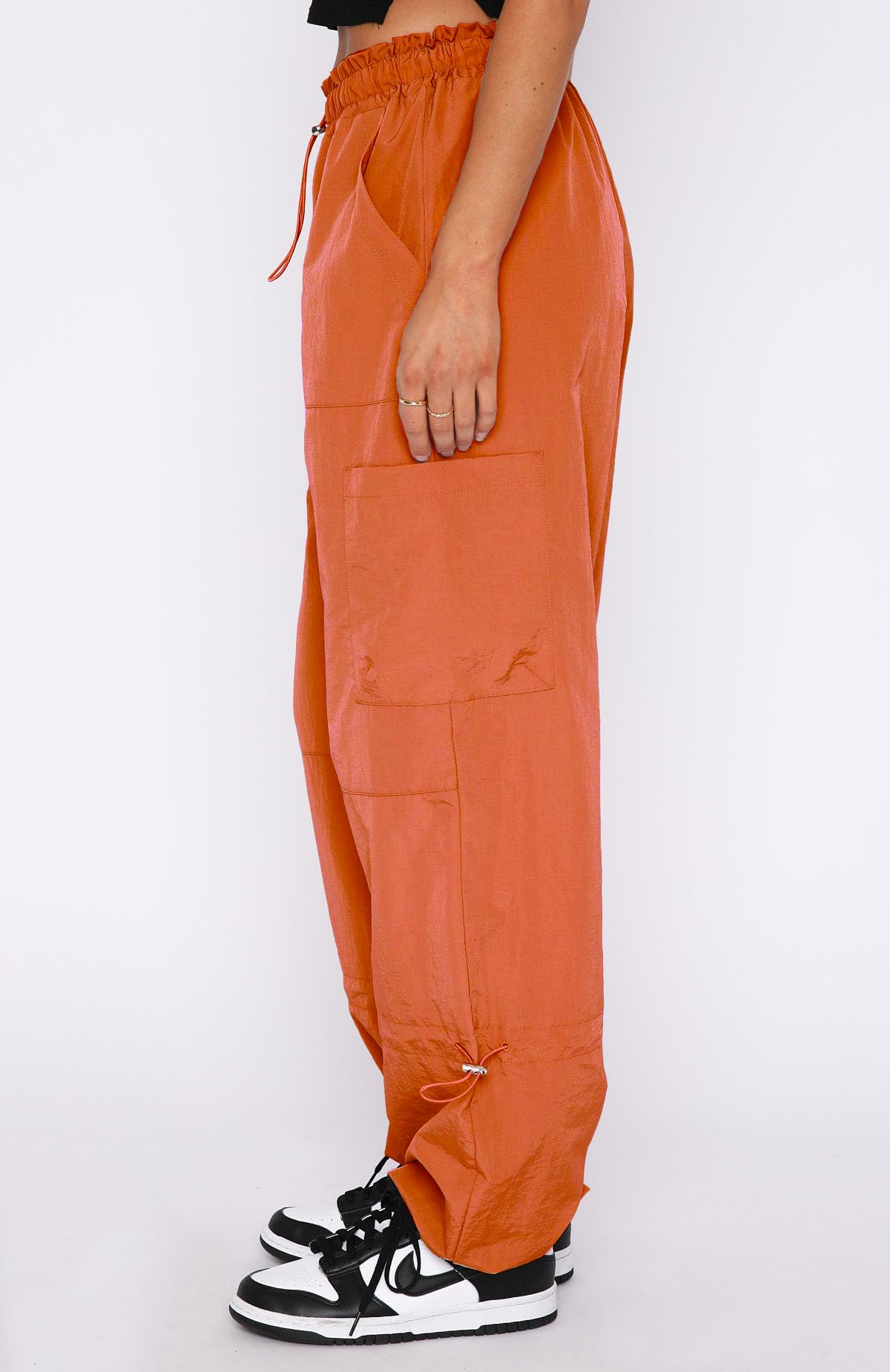 Trendy clothes for women: Our womens cargo pants with pockets combine a womens parachute pants design and a flare wide leg fit, which is bold and fun, style of the 90s, making our cargo pants a unique piece of bottom. With details like elastic waist band, side and cuff adjustable drawstring with toggle, 4 pockets, all make these adjustable cargo pants women a super chic piece in teen girl gifts trendy stuff collection