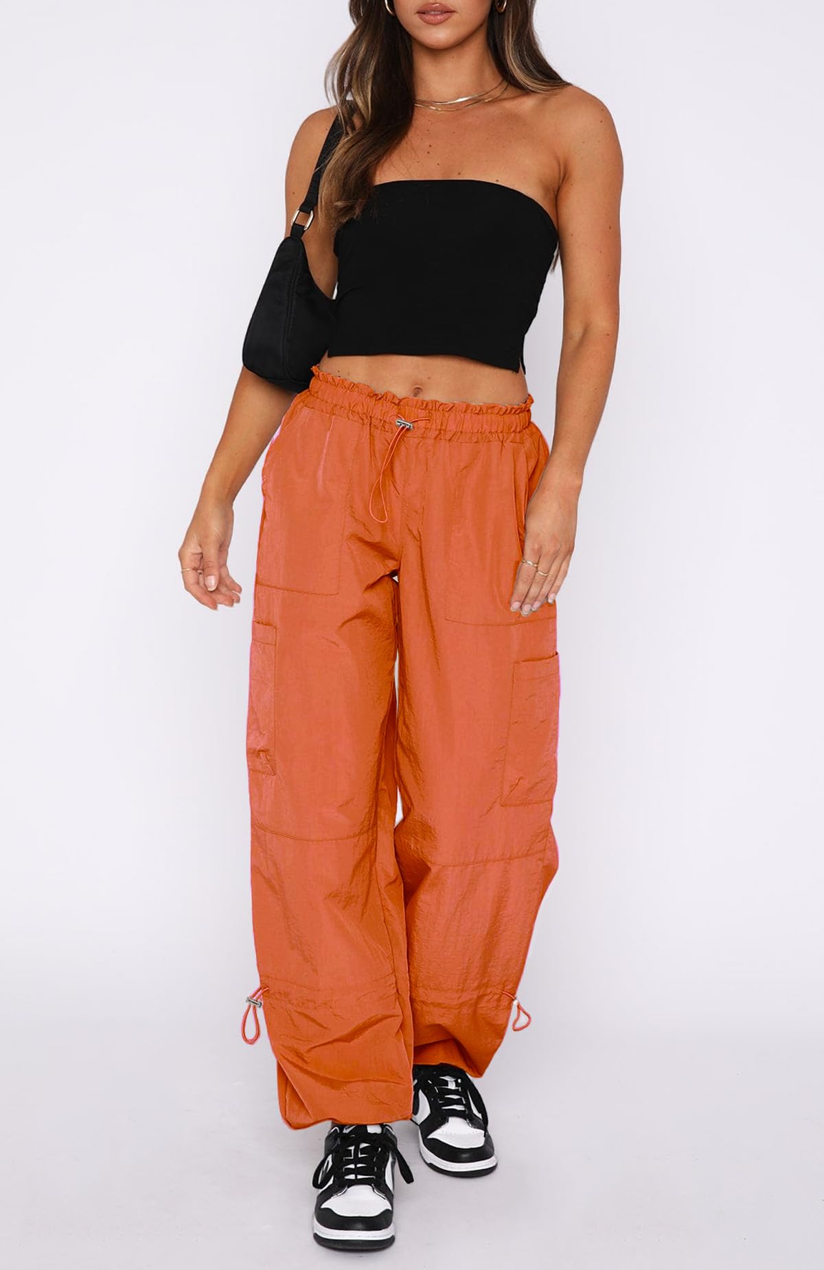 LIGHTWEIGHT BUT DURABLE:These women’s cargo pants are made of soft, parachute-inspired fabric that’s ultra-light.The airy and baggy style is part of the Y2K design, perfect for creating a cool, edgy streetwear vibe—especially in warmer weather