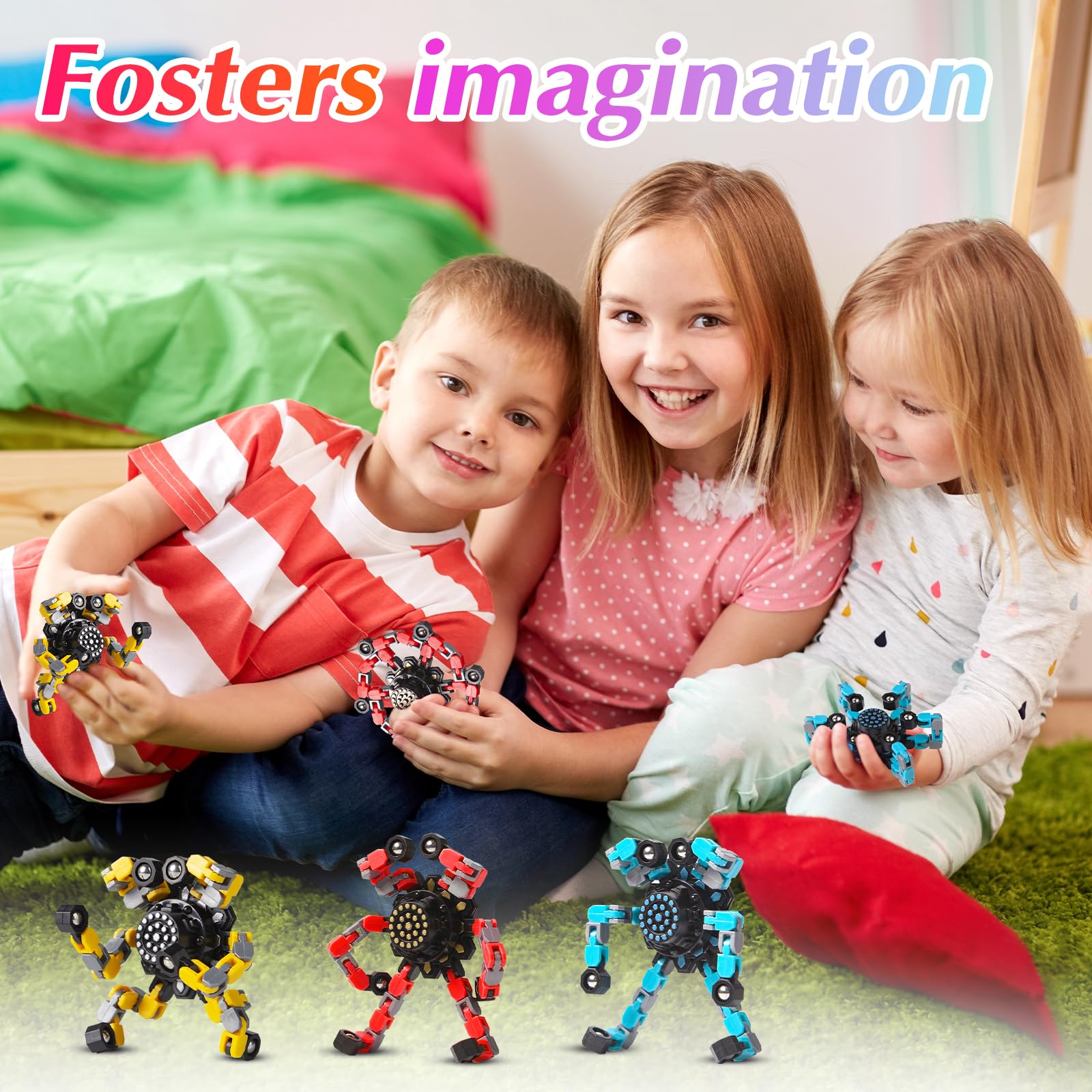 Transformable Fidget Spinners (4-Pack) – Stress Relief Toys for Kids & Adults Keep hands busy and minds focused with this 4-pack of high-speed fidget spinners. Perfect for stress relief, sensory stimulation, and improving concentration, these spinners feature smooth, quiet rotation and durable construction. Key Features: ✔ 4 Unique Designs – Variety of colors and styles in one set ✔ Smooth Spinning Bearings – Long-lasting, noiseless performance ✔ Lightweight & Portable – Fits easily in pockets, bags, or desks ✔ Great for All Ages – Fun for kids, teens, and adults ✔ Ideal for Gifting – Perfect as party favors, stocking stuffers, or classroom rewards Versatile Use: Helps with anxiety, focus, ADHD, and restless hands. A must-have for home, office, or travel.