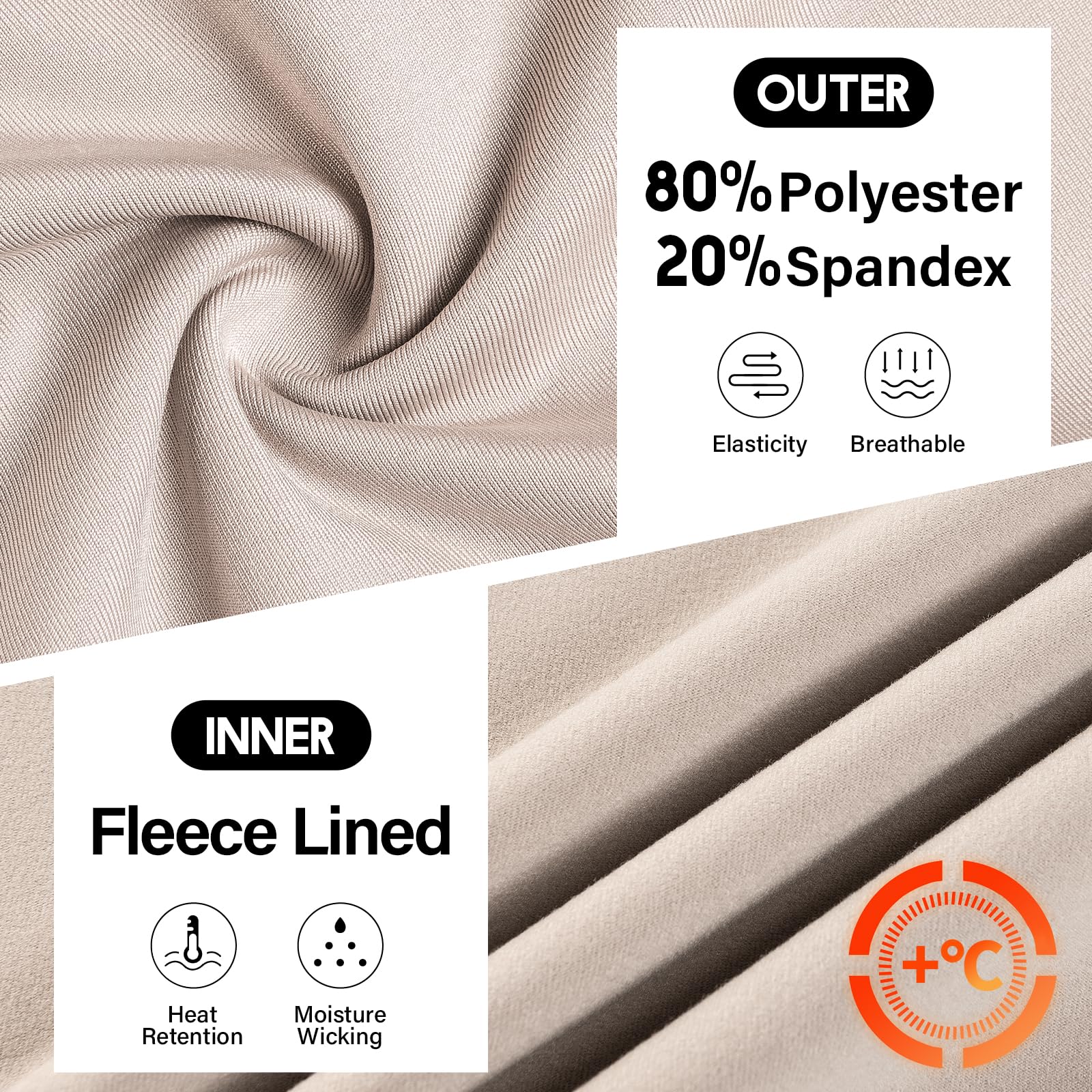 Fleece Midweight Thermal Underwear Shirts:Its made of polyester/spandex blend fabric with high density fleece lined,the insulation material which can lock your body heat well,perfect heat retention minimizing heat loss making perfect for outdoor activities in cold weather.