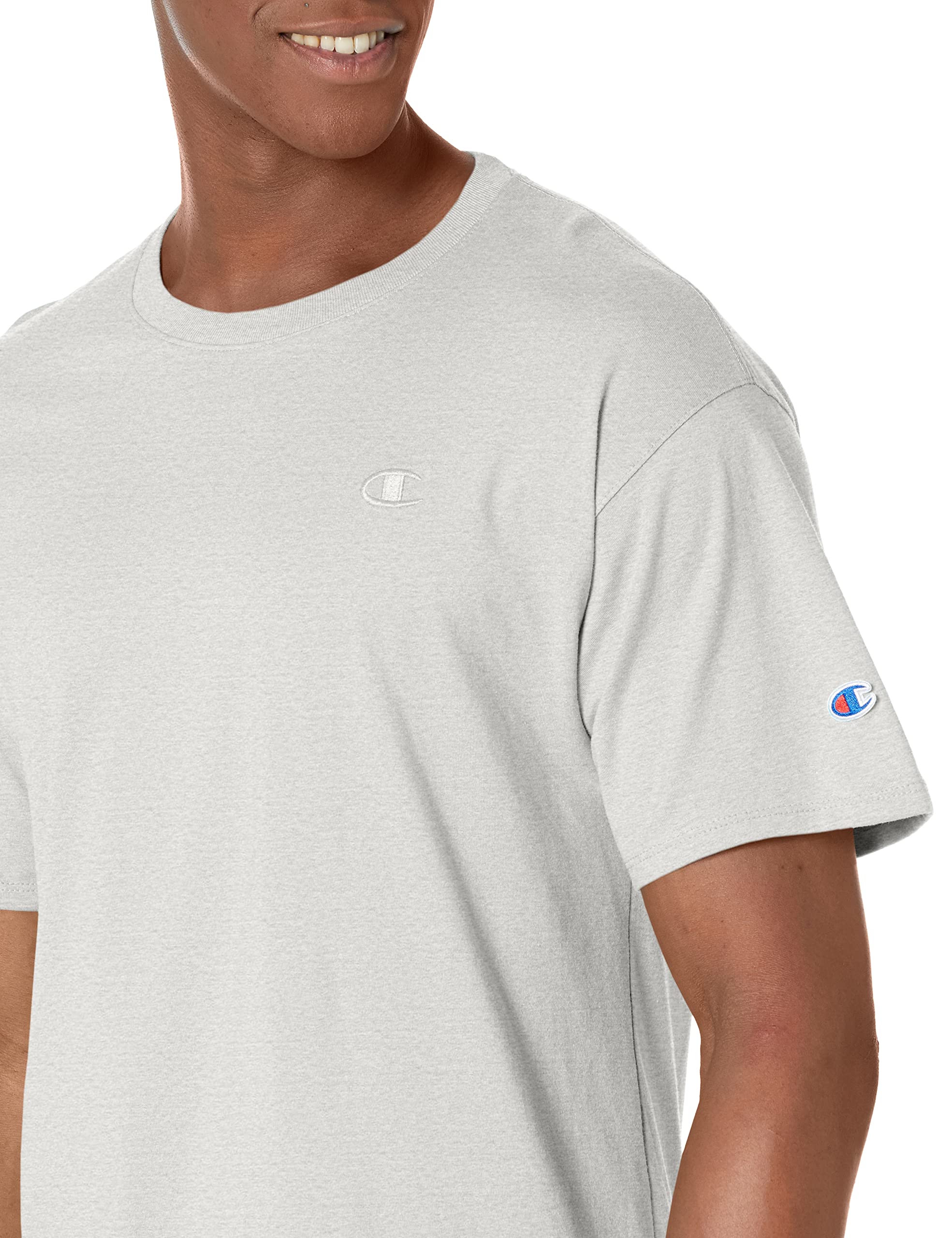 Description TIMELESS THREADS. Add lived-in comfort to your daily rotation with this T-shirt for men, expertly crafted from a soft cotton or cotton blend. Cut for a standard fit, it's detailed with a shape-holding ribbed crewneck, short sleeves, and matching back neck tape for no-irritation comfort. This classic men's T-shirt style is a must-have that pairs well with sweats and shorts for a rounded-out sporty look. Finished with the iconic C logo patch embroidered at the chest for an authentic look.