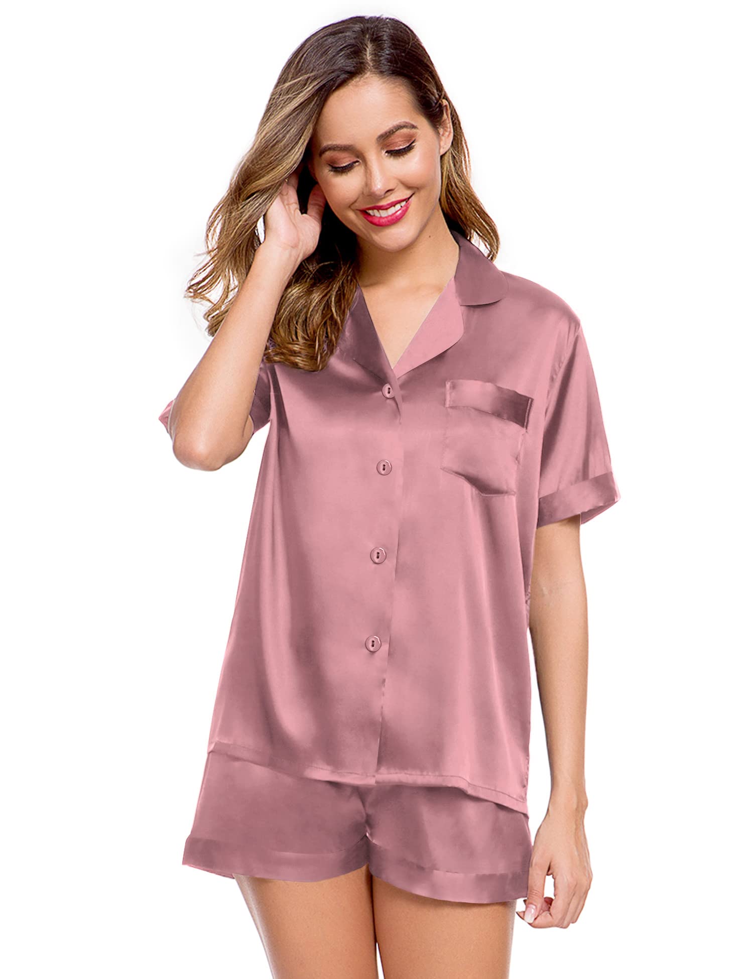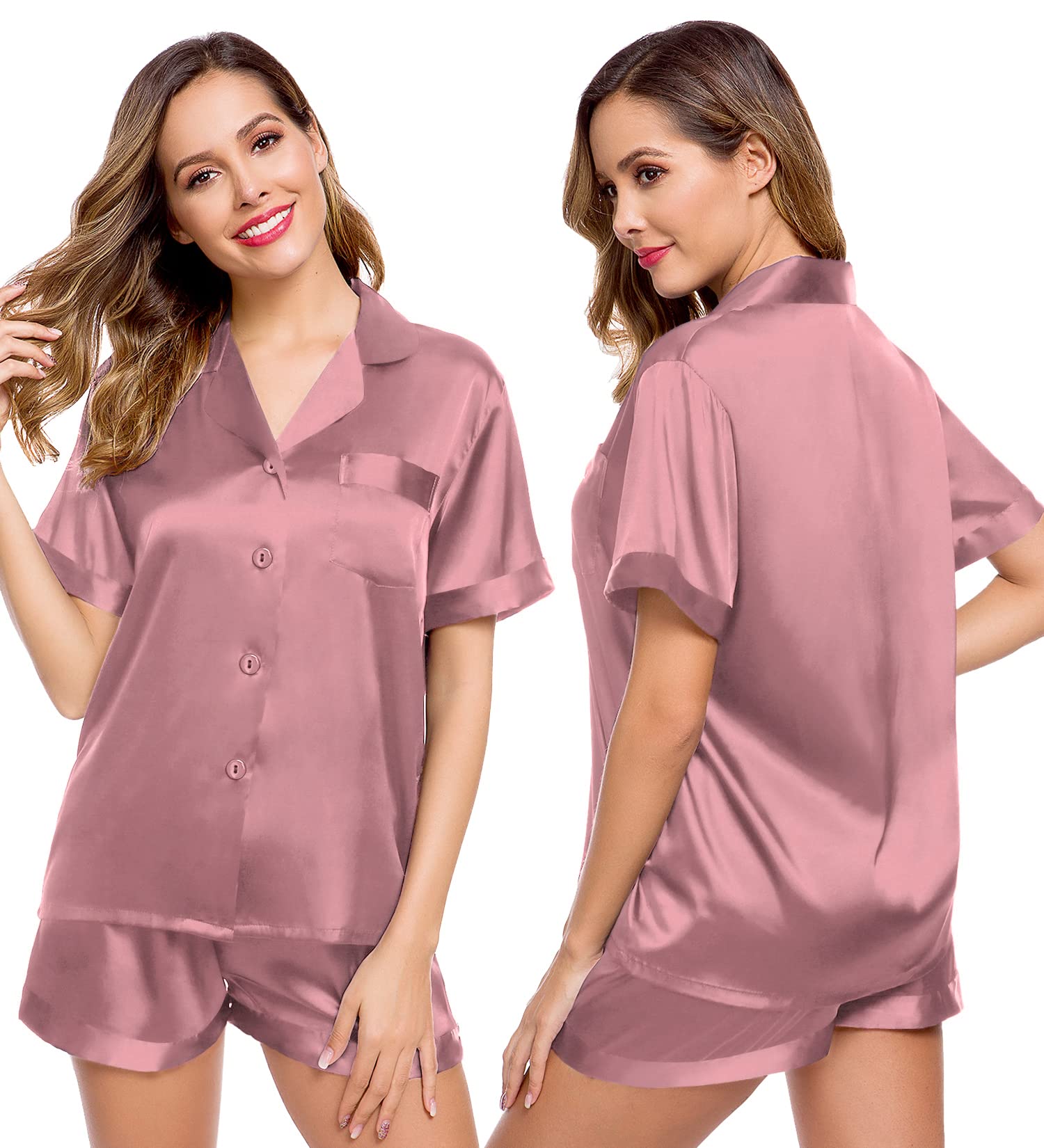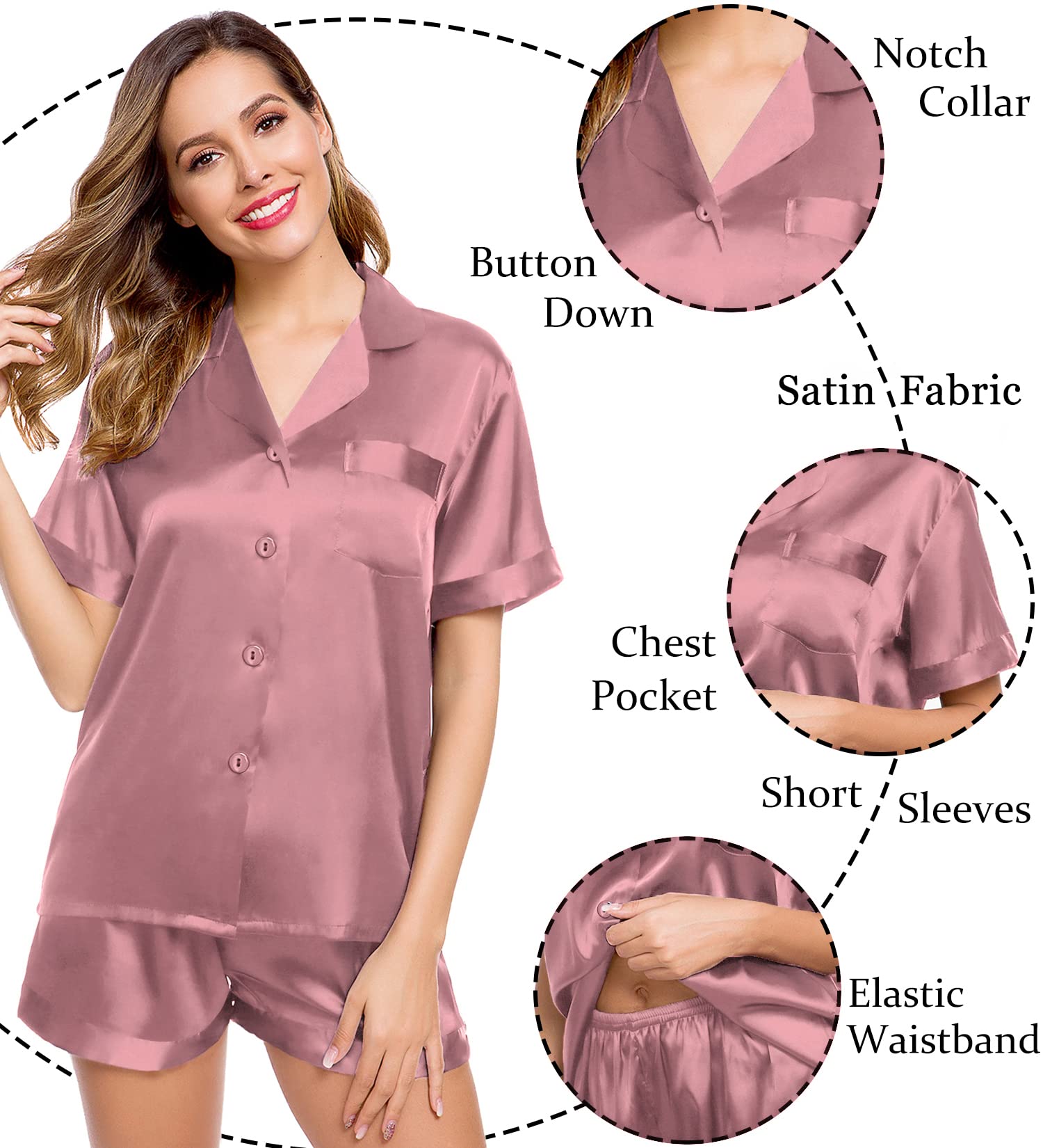 ❤ OCCASIONS: This womens short sleeve silk satin pajamas set is perfect for sleepwear, nightwear, loungwear.The lounge set can be worn as daily pajamas. Suitable for pajama party, girls day, bride wedding. Must have for your bridal party or just daily wear! This silk pajamas for women shorts set is lightweight and easy to carry.