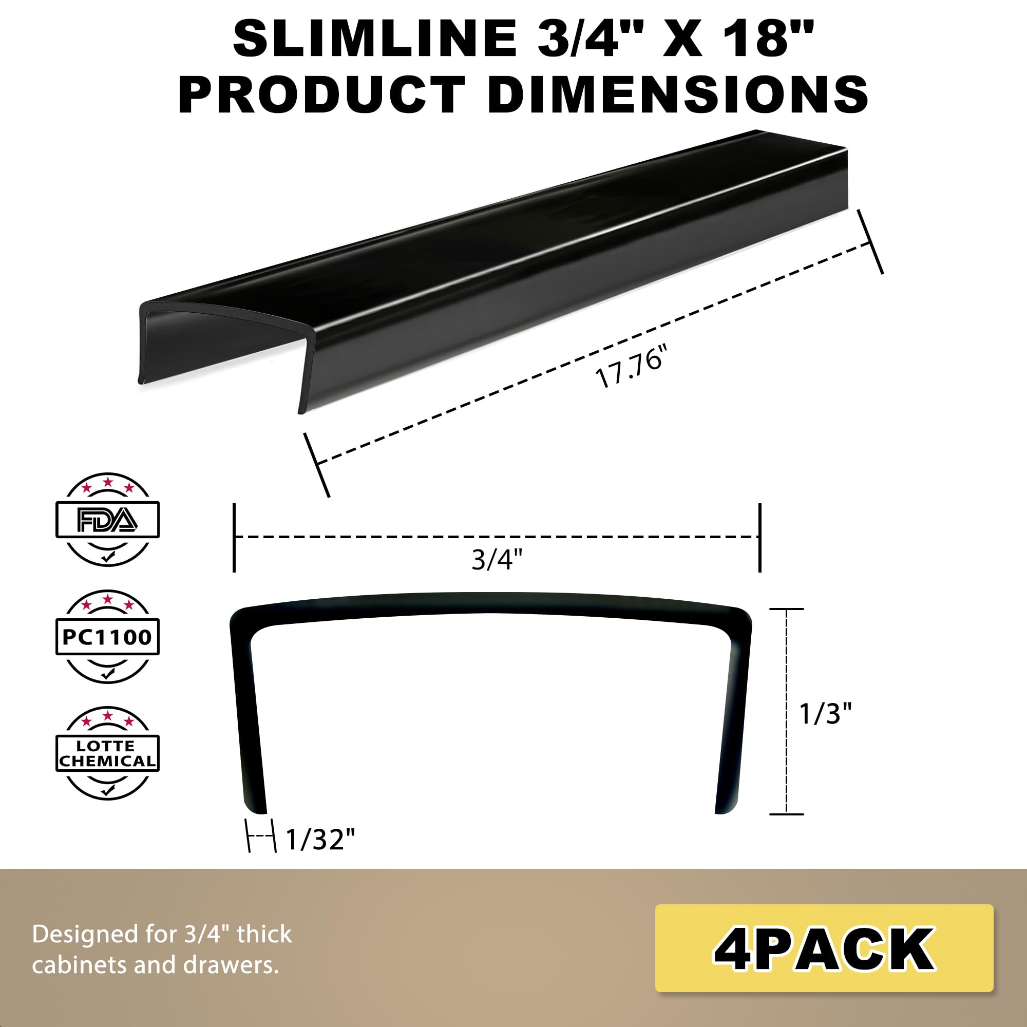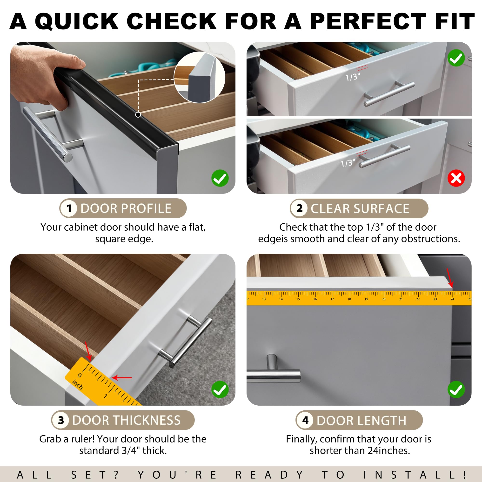 Precision 17.76" Fit: Made for standard 3/4" cabinet doors. Slimline design (0.03" thin) adapts to face frame/inset/Euro styles. No cutting needed for cabinet doors.