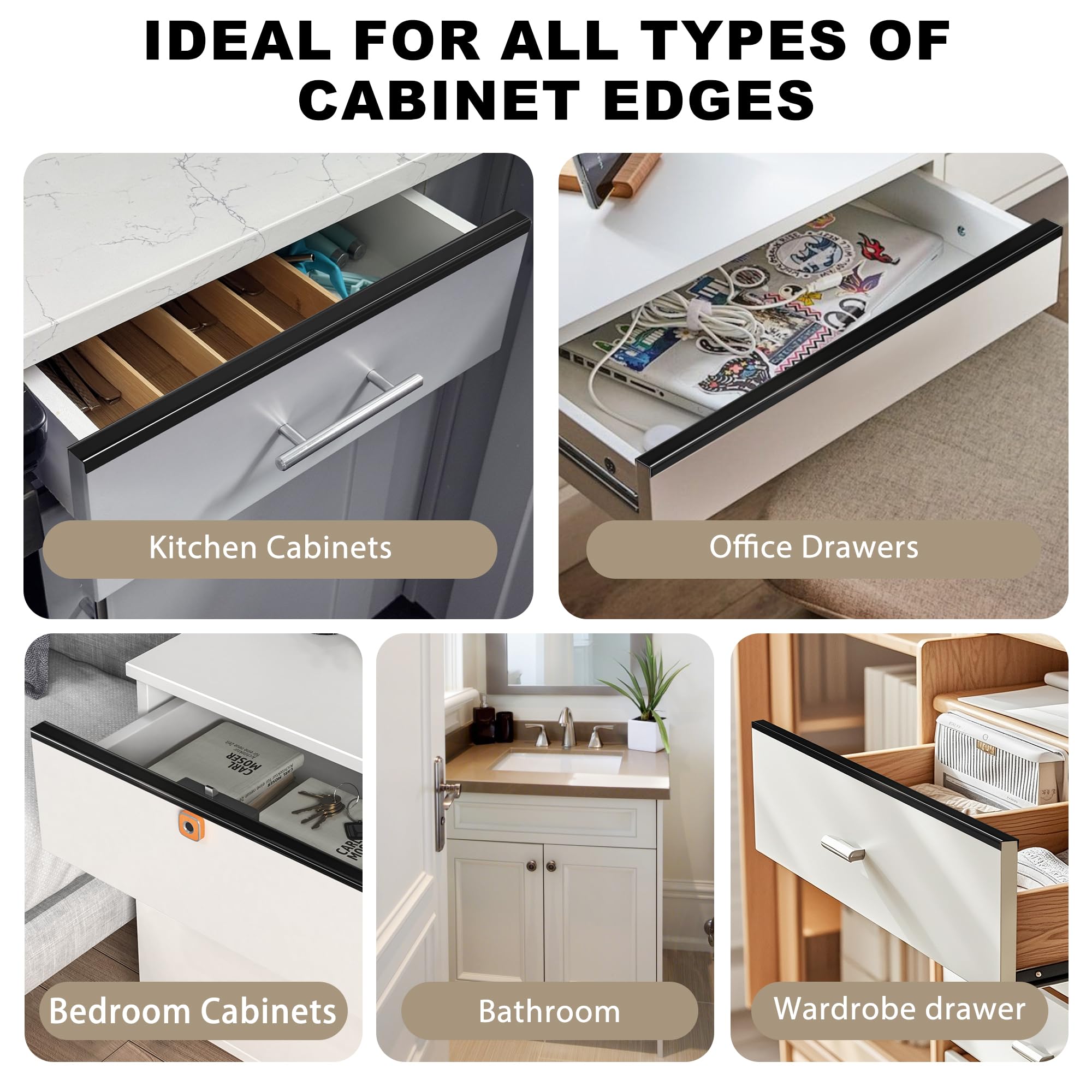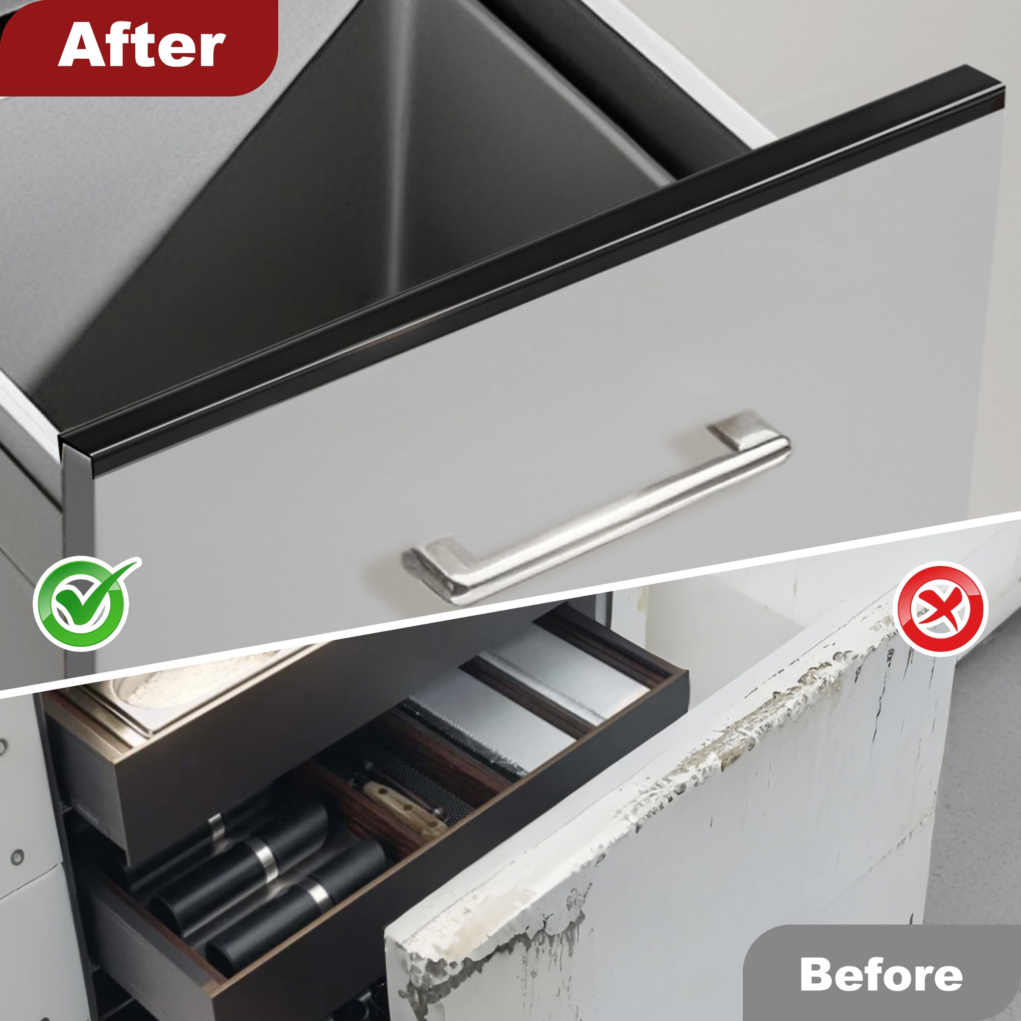 Versatile Use: Cabinet protector edge guard are not only suitable for cabinet doors, but can also protect the edges of a variety of items, such as drawer fronts, different types of cabinet doors, stool legs, railings, tables, shelves, crates, and more.