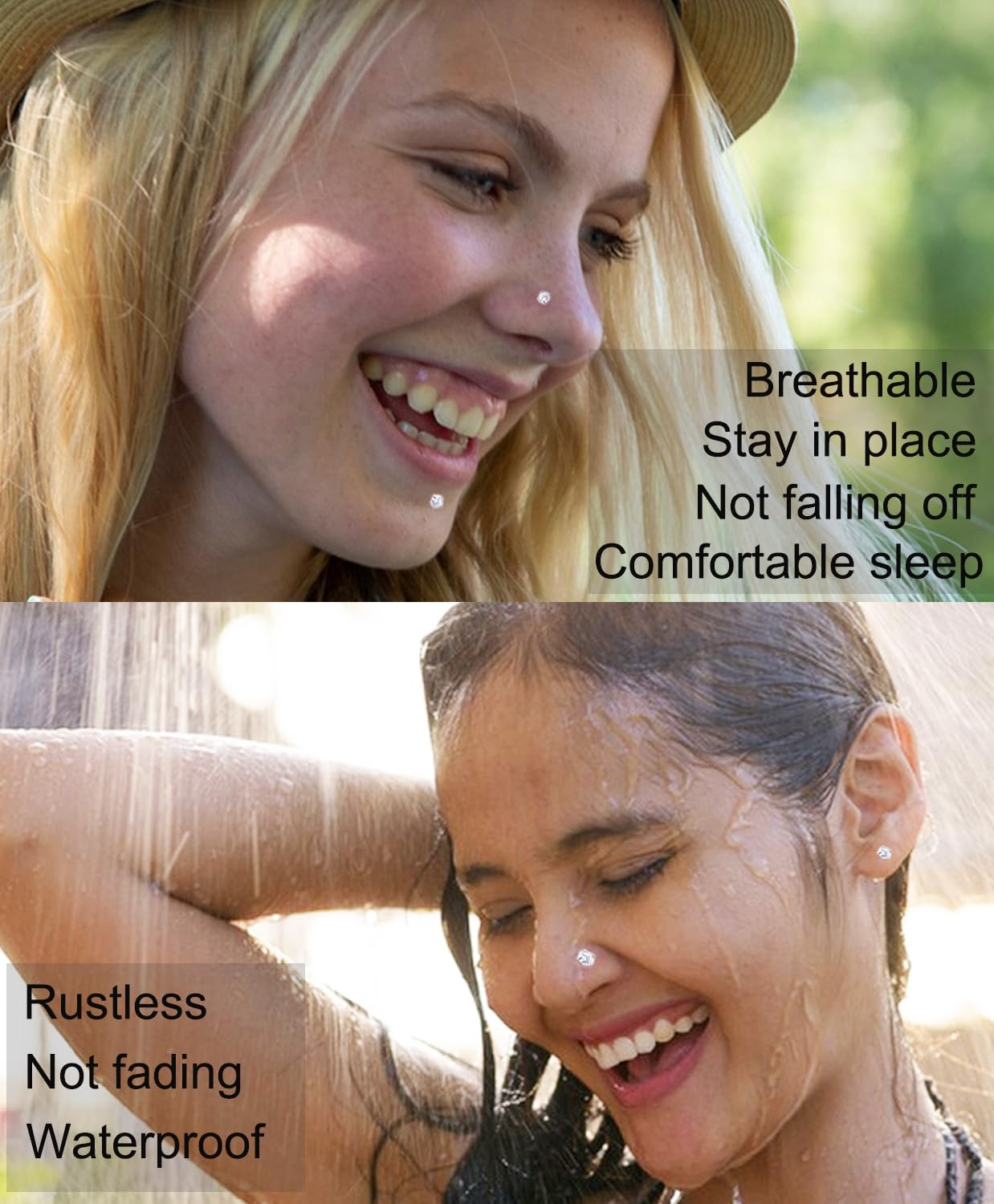 Comfortable and Easy to Operate: These screw nose rings slide in effortlessly and provide a comfortable fit, making them suitable for extended wear. It stays firmly in place during daily bathing, running, swimming or high - intensity workouts,allowing you to completely get rid of the worry of loss and enjoy unrestricted exercise and life