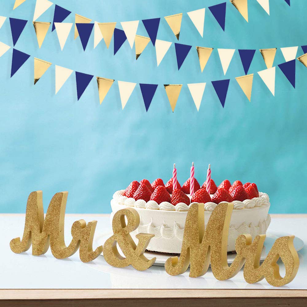 Environmental Material-Our gold and navy blue pennant bunting are made of two different materials paper.Double sided metallic paper and high quality card stock,safe and non-toxic,durable and reusable.