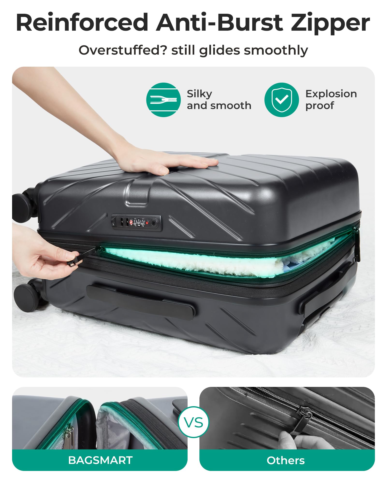 Premium Service And Warranty: BAGSMART will back each piece of tsa approved carry on luggage with a 5-year manufacturer's warranty. Before shipment, hard side luggage with spinner wheels undergoes thousands of rigorous tests to ensure that our carry on suitcase meets strict standards and can withstand any journey. If there is any quality problem, please feel free to contact us. Professional and patient customer service will reply to your satisfaction in time.