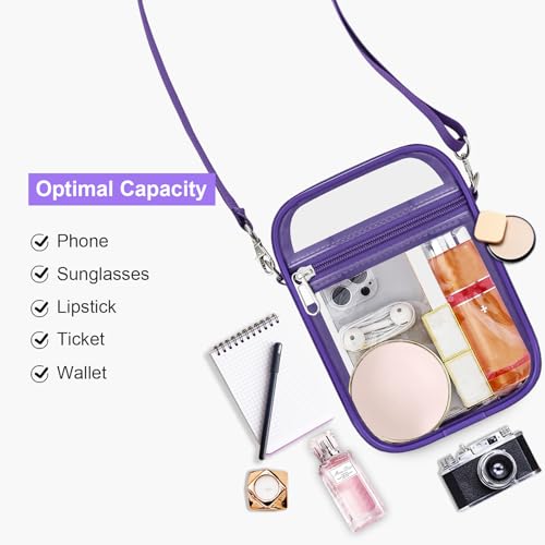 【Suitable Capacity】One main compartment can hold a small wallet, phone, lipstick, pen, tissues, and sunglasses, while the front pocket can hold keys, cash, cards, and tickets, making our clear bag an essential for your concert outfit.