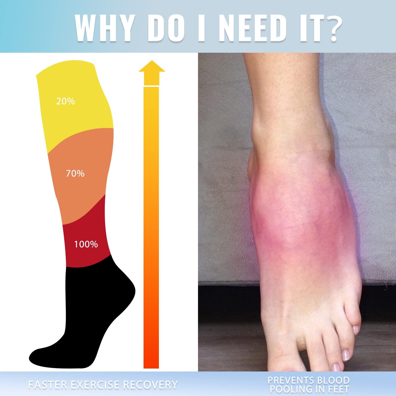 SUITABLE FOR VARIOUS OCCASIONS Support compression socks are suitable for a variety of people, whether you are nurses, runners, joggers, pregnant women, office workers, airplane travelers, or on other occasions, They can promote blood circulation and reduce pain. It is an indispensable part of your life