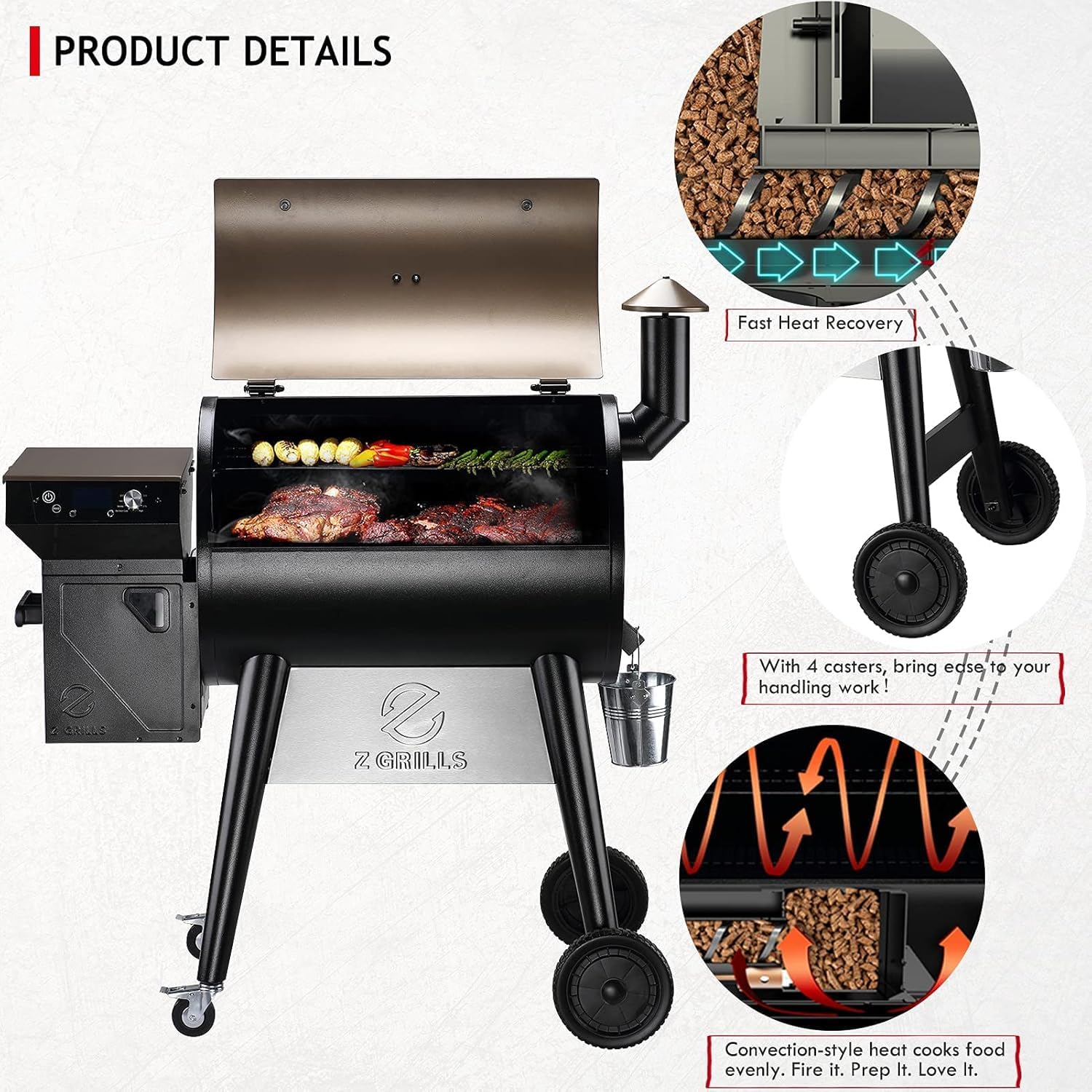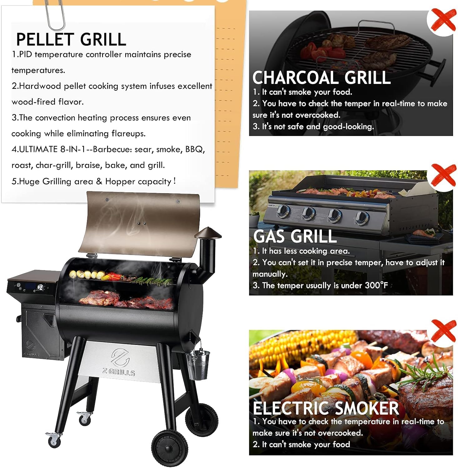 Z GRILLS 2025 Upgrade 8-in-1 Electric Wood Pellet Grill & Smoker with PID V2.1 Controller, LCD, 697 Sq In, Dual-Wall Insulation, Meat Probes, Easy Hopper Clean-out & Grill Cover
