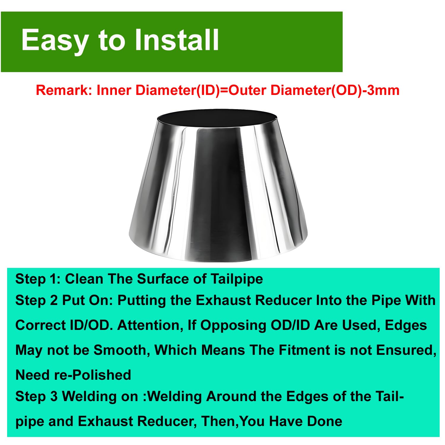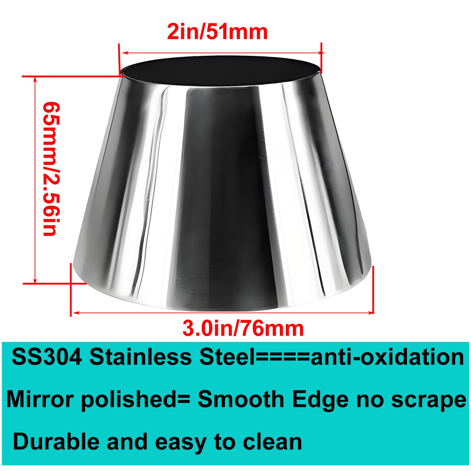 【Precision Mandrel Bend Design】Smooth 65mm(2.56") height transitions 2" (51mm) to 3" (76mm) pipes with minimal turbulence; Mirror-polished edges reduce burrs and scraping risks