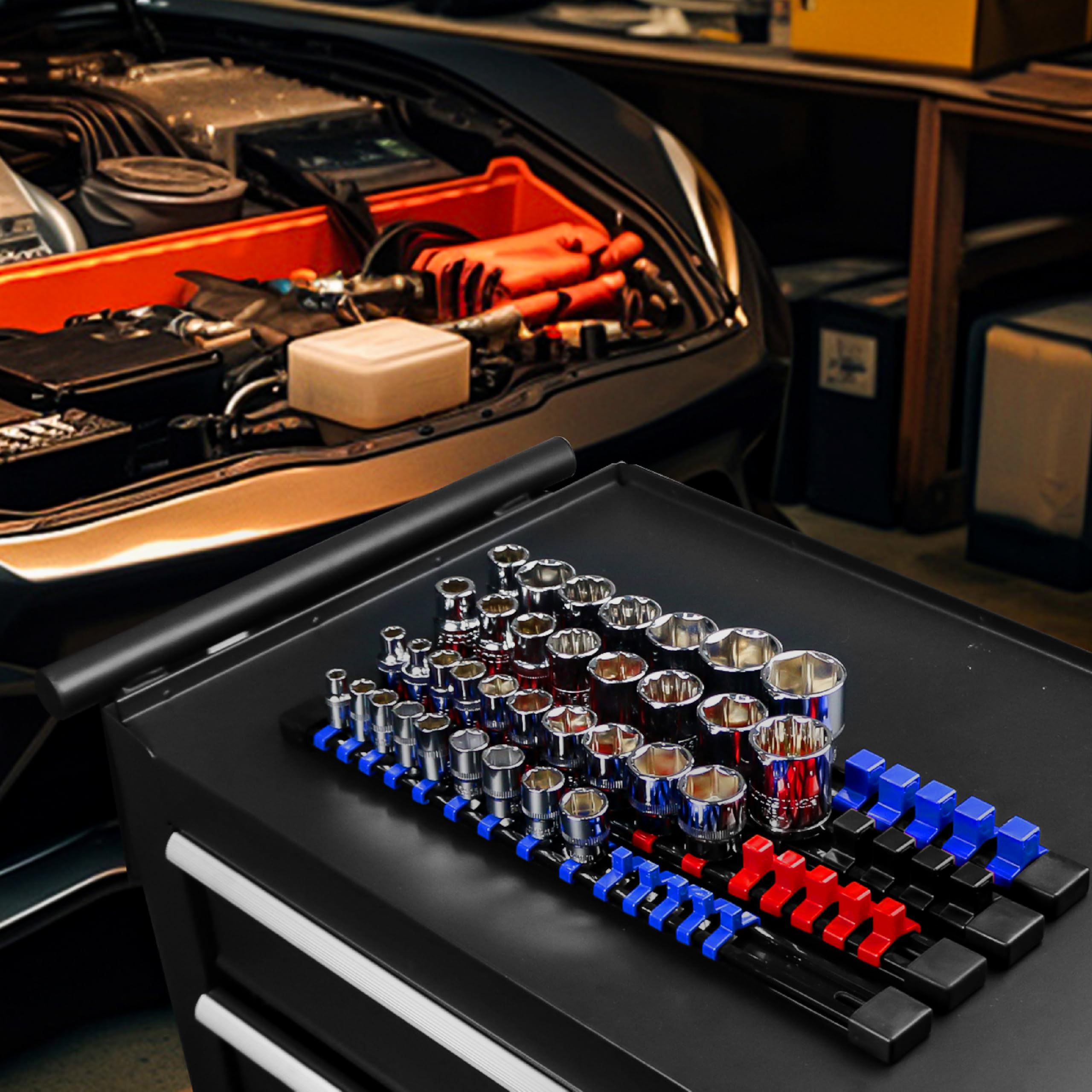 【EASY TO IDENTIFY】This socket holder is available in blue, black and red, so you can quickly and easily find SAE and metric sockets