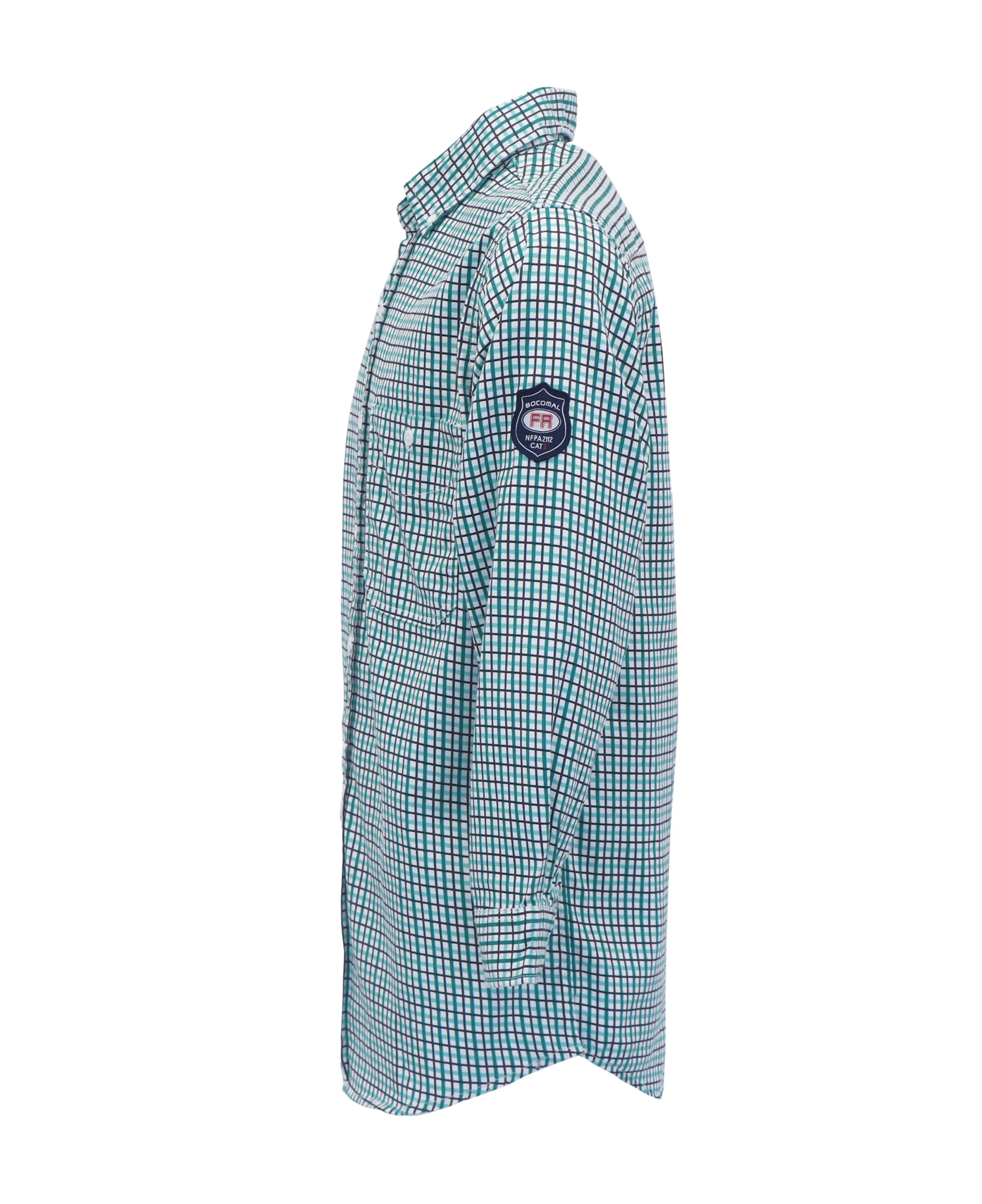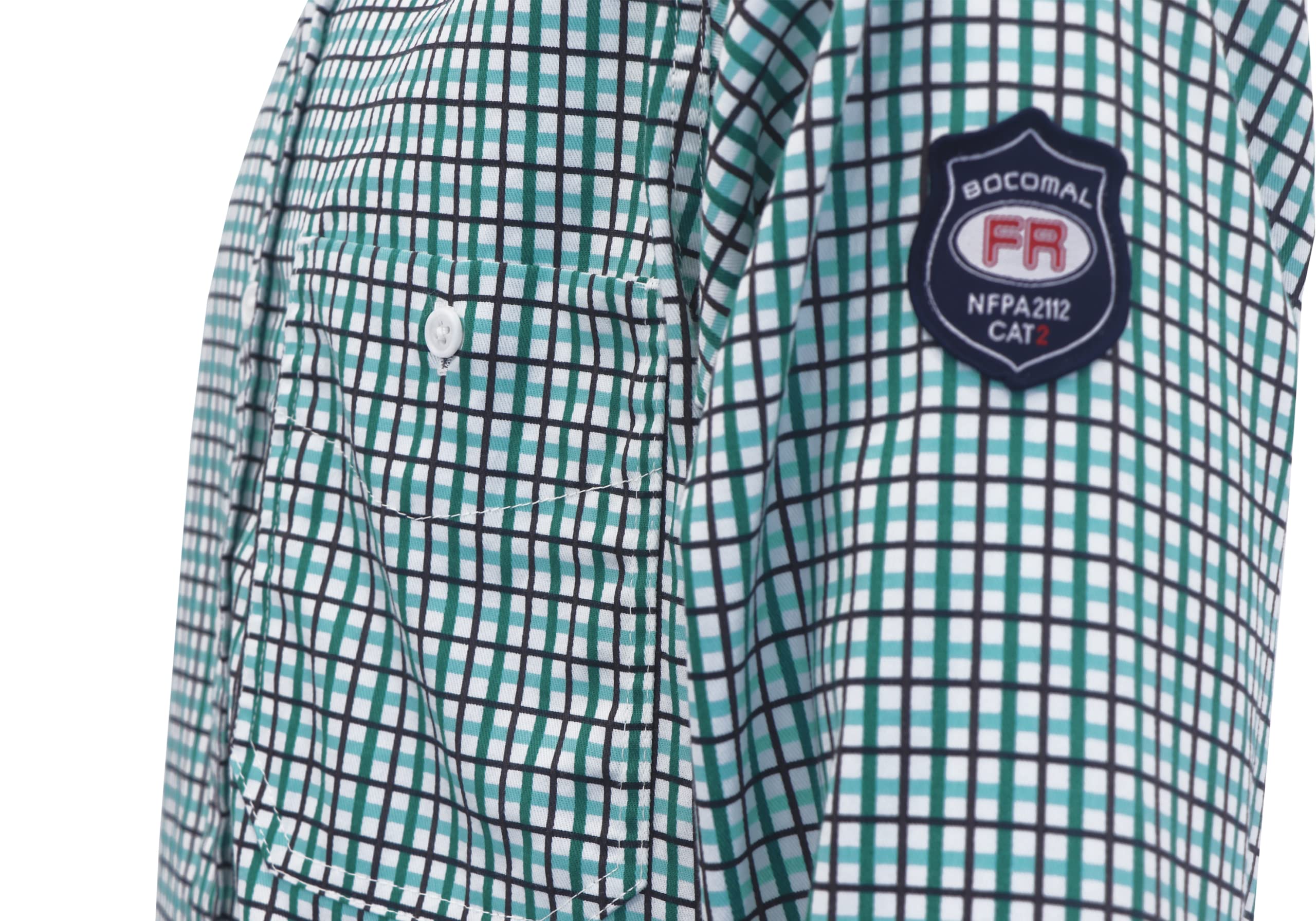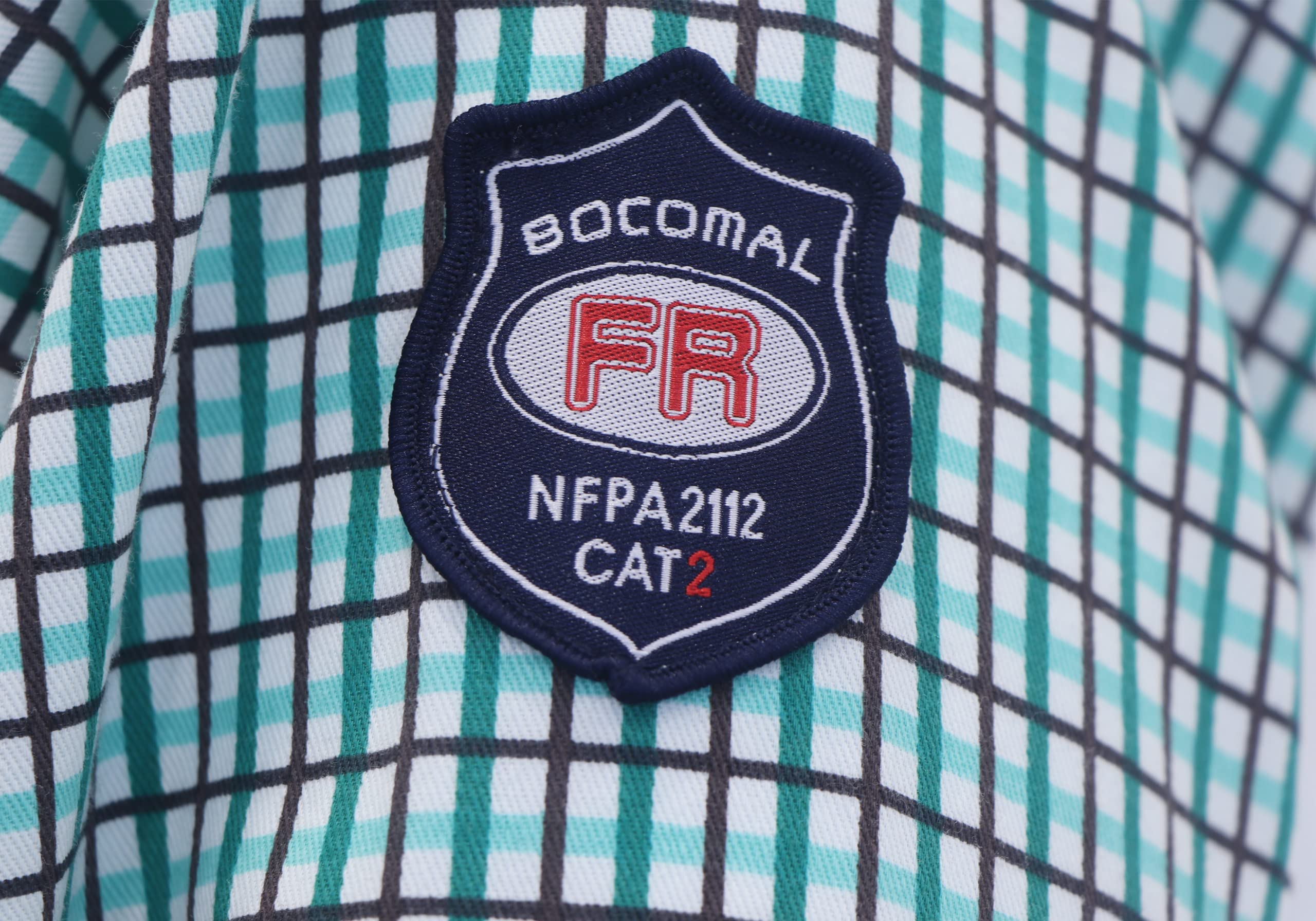 FR MATRIALSοΌ6.5OZ Printed Plaid Cotton Twill FR Treated,FR Buttons,FR Sewing Threads!Clear FR Tag on arms and bottom front.More FR info On Tag About UL Certification.