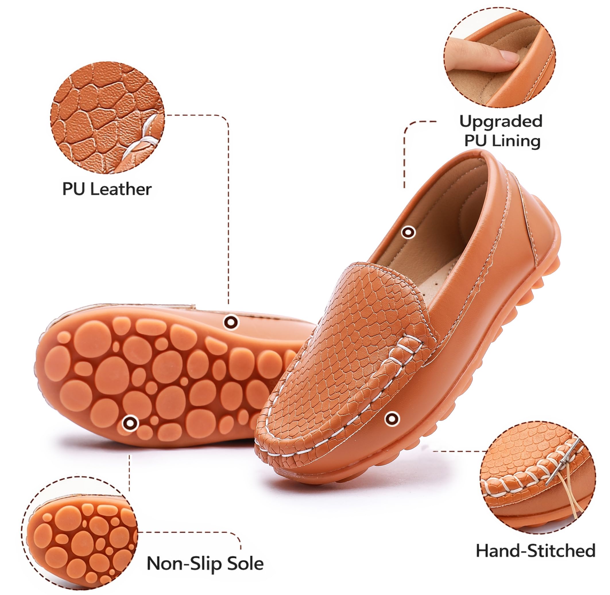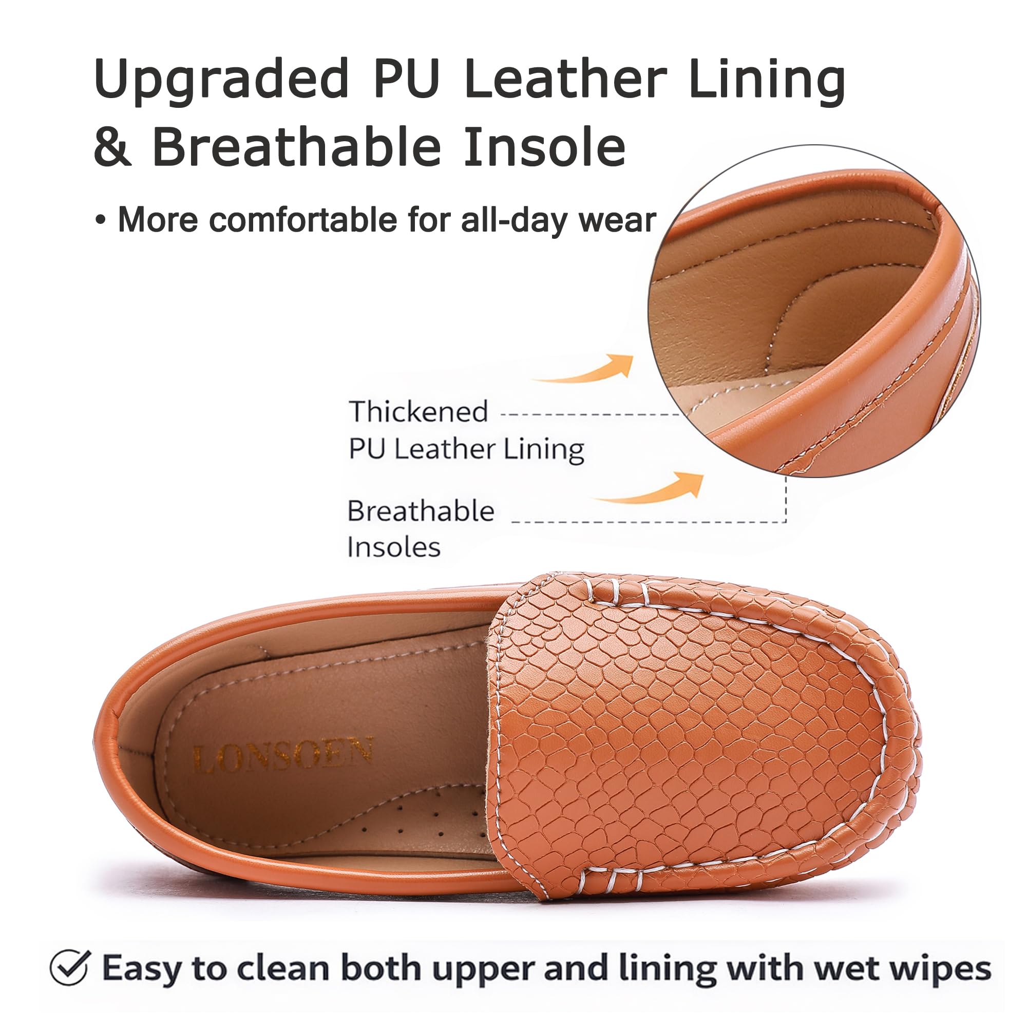 Premium PU Upper:High-quality PU leather upper with a classic textured design. Durable, smooth, and gentle on kids feet for daily wear.