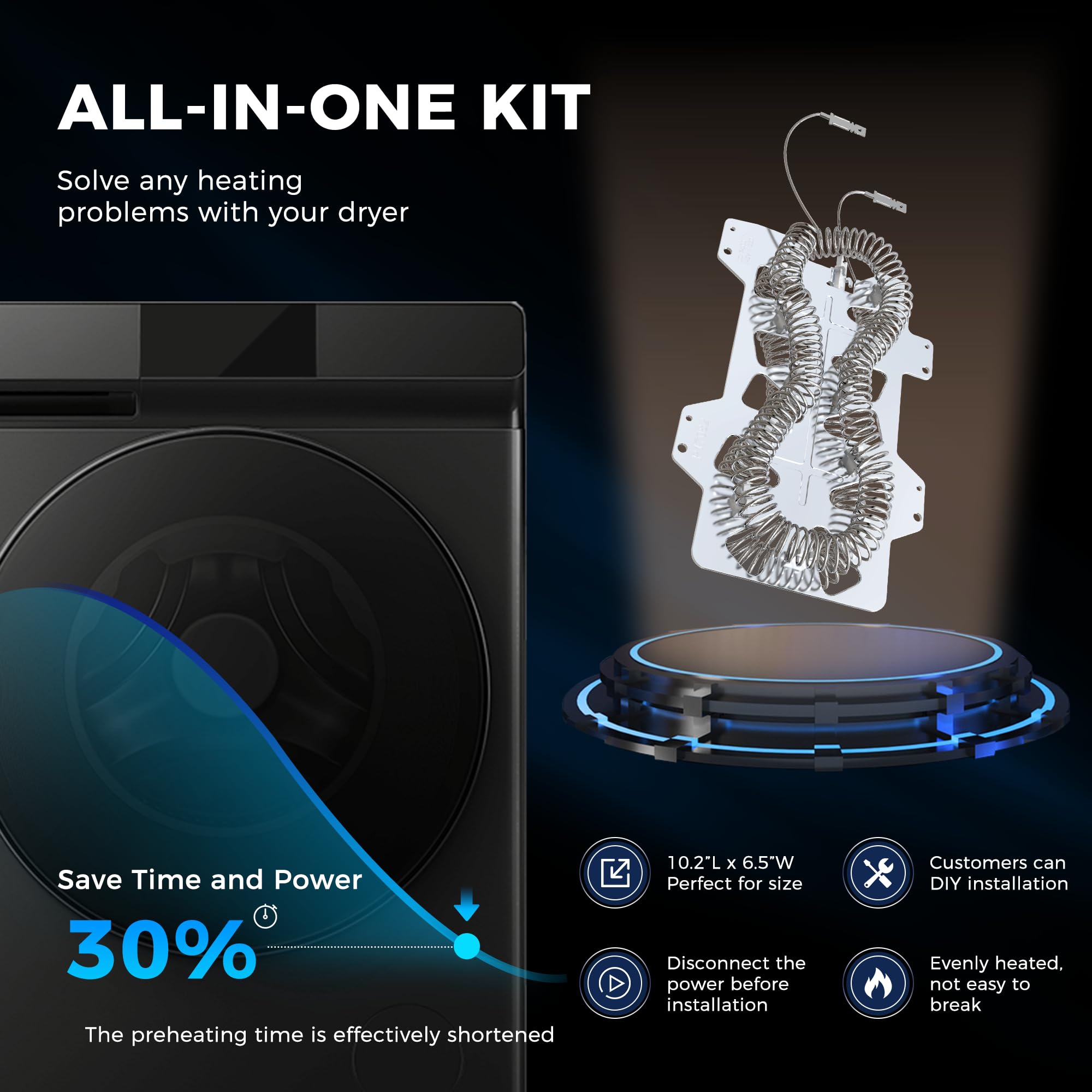 【EASY TO INSTALL】: If you are a DIY person or have experience fixing your dryer, it is pretty easy to replace your old dryer heating element.if not,you can check out some "how-to's" and videos or your local appliance repair shop can do it for you! Disconnect the power before installing this part and ensure your dryer vent clean