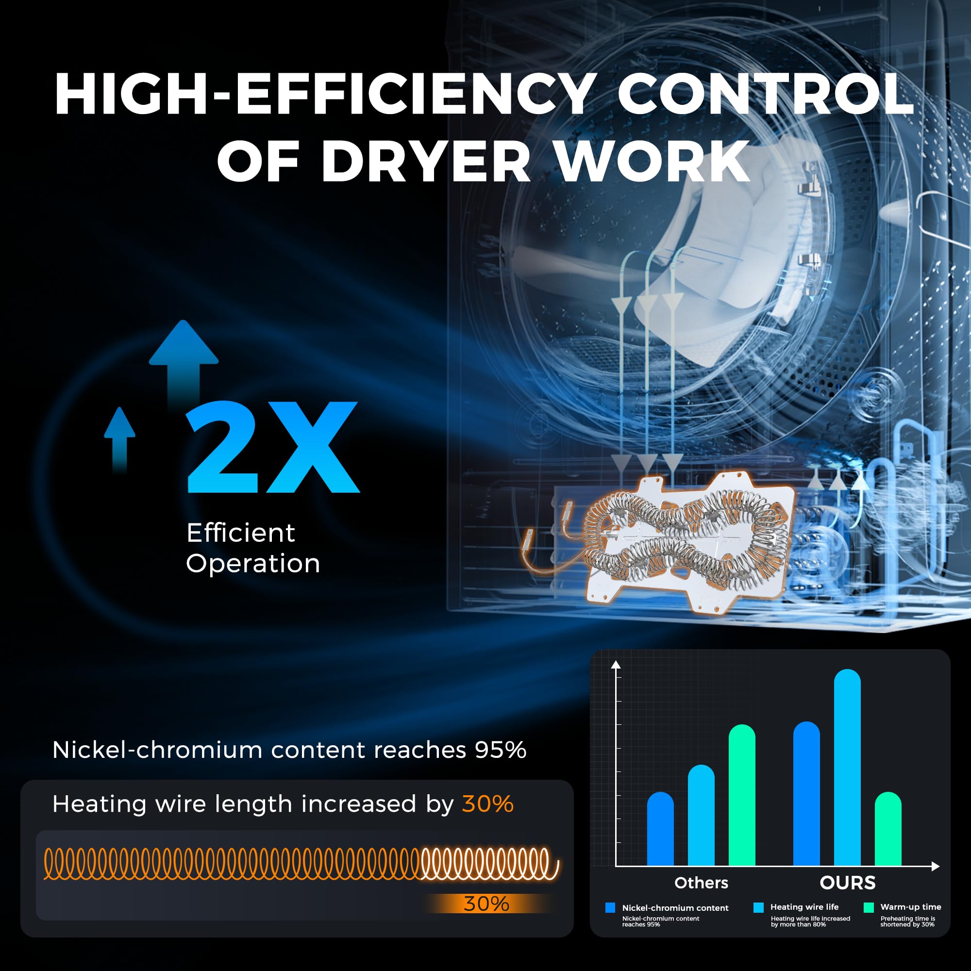 【PREMIUM QUALITY 】- The Samsung dryer heating element DC47-00019A fixes coils containing 95% nickel-chromium to a galvanised sheet, which has been tested by the manufacturer for higher heat resistance, y extending its life. In addition, the wire of the dc47-00019a heating element is 25% longer than that of other dryers, increasing the resistance by 65% and producing a steady heat that ensures constant and even heating.Fits OEM Standards!