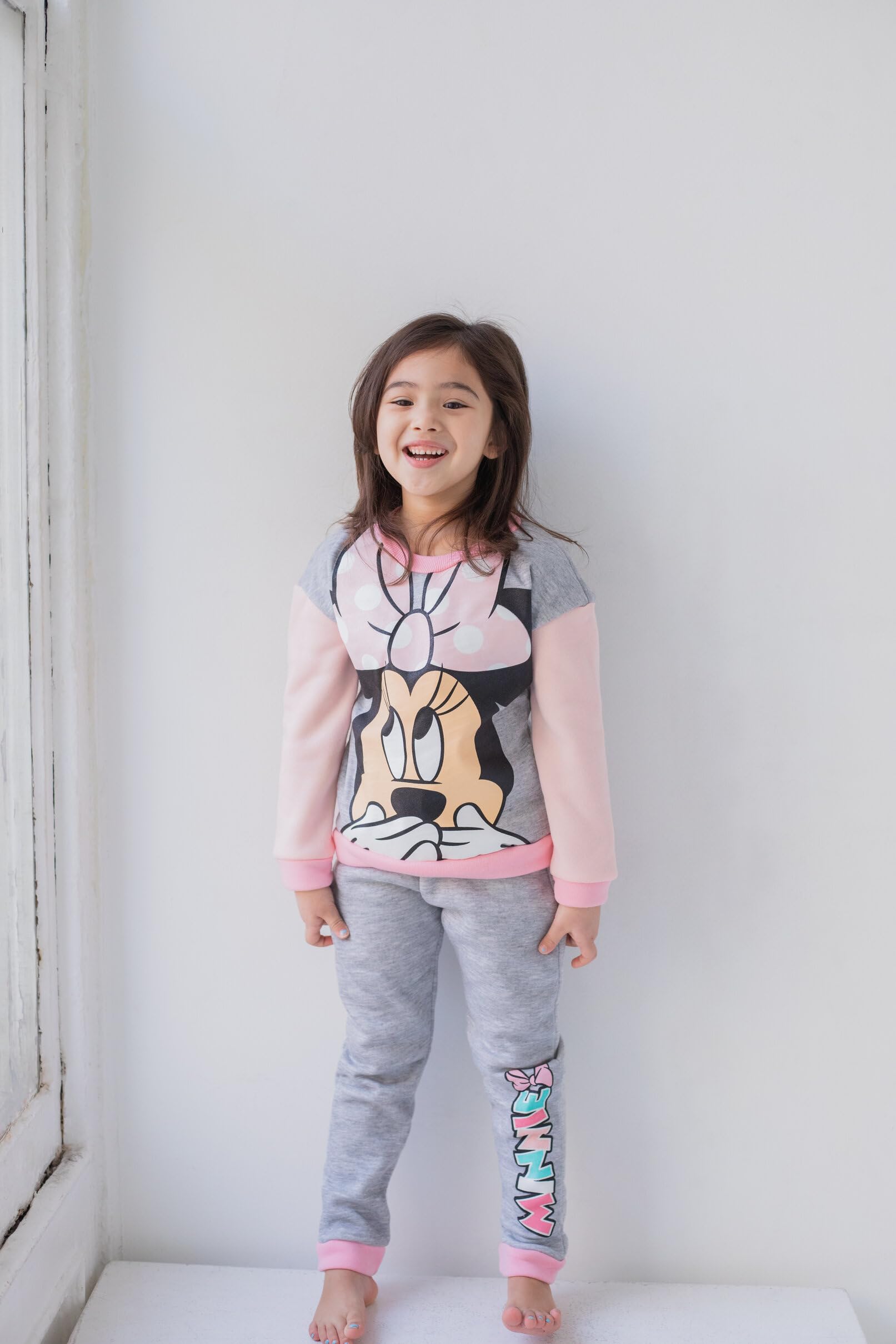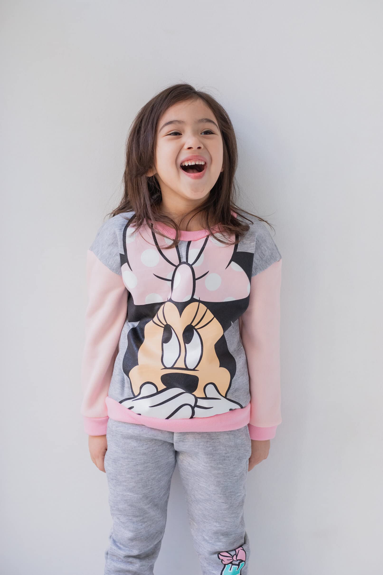 Officially licensed Disney little girls cute and stylish long sleeve graphic sweatshirt and cute, comfy and stylish pants