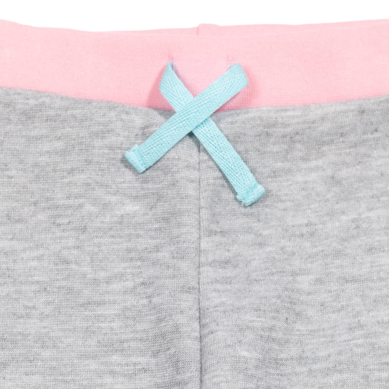 Ribbed waist cuffs for a better fit; Rib knit crew neck collar; Ribbed sleeve cuffs for a better fit; Awesome screen print design; Fashion bow; Drawstring closure; Ankle cuffs for a better fit; Elastic waist for better fit; Pull on closure