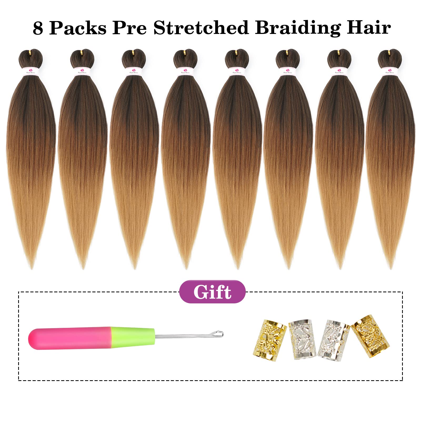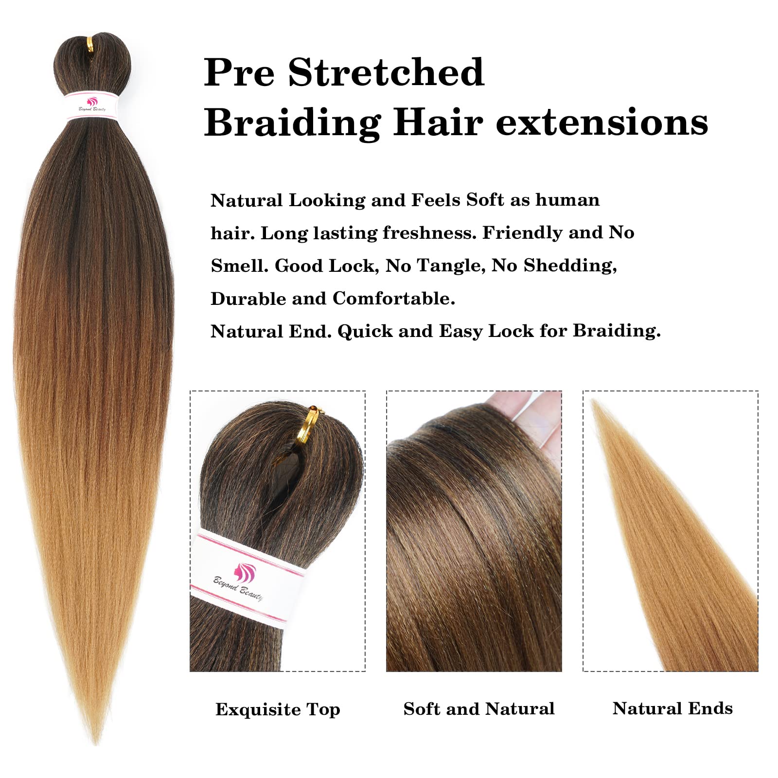 Texture: Yaki Texture,Natural Looking,Not Easy to Knot,You Don't Need to Spend a Lot of Time to Install The Ombre Pre Stretched Braiding Hair, Perfect for Twisting, Braiding and Locs and So on.