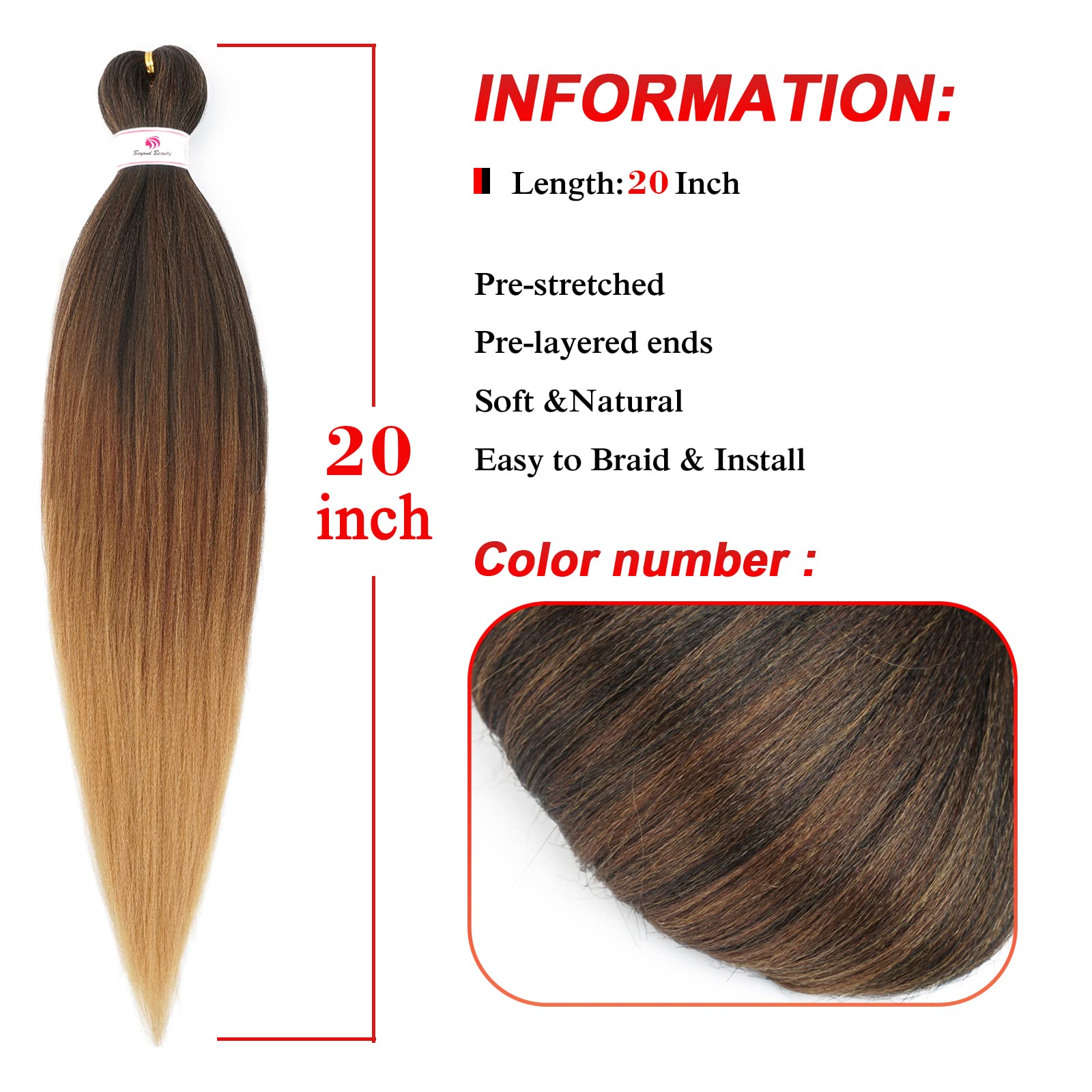 Material: The Material of The Pre-stretched Braiding Hair Made with High Quality Low Temperature Flame-Retardant Synthetic Fiber,The Touch Feels Like a Real Hair, Very Supple and Looks Very Beautiful.
