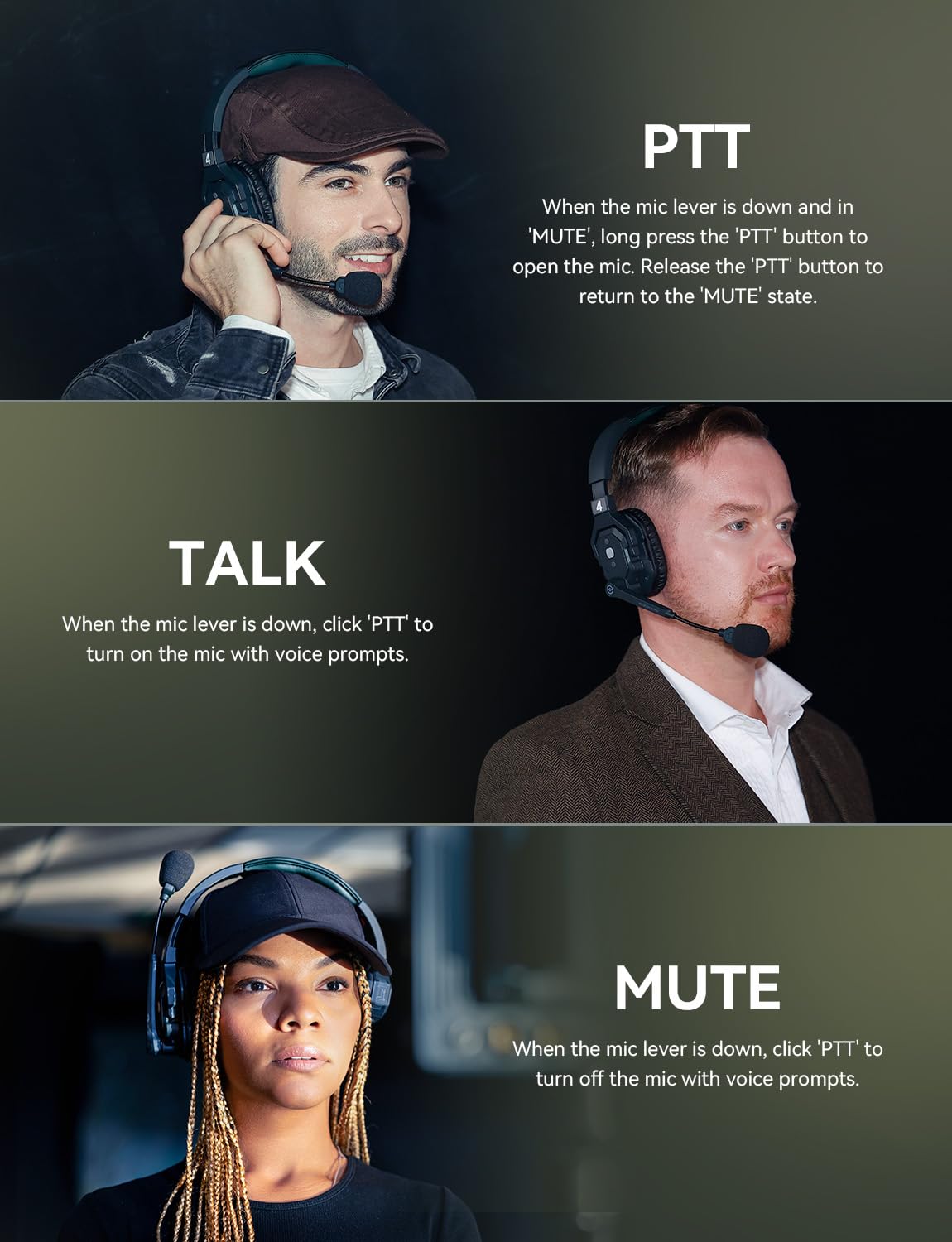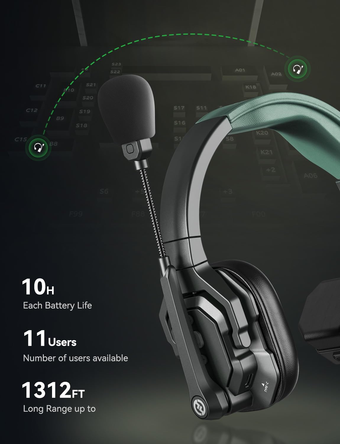 【Ready Out of Box & Dependable Mute Control】The Solidcom SE PRO is pre-paired and ready to use—just unbox and start filming. Simply pull down the boom mic to begin communicating. Designed for immediate use, it features a green headband for a subtle, professional look. A dedicated MUTE button and boom mic mute provide easy switching between TALK and MUTE, while the industry-standard PTT mode ensures seamless communication tailored to your needs.