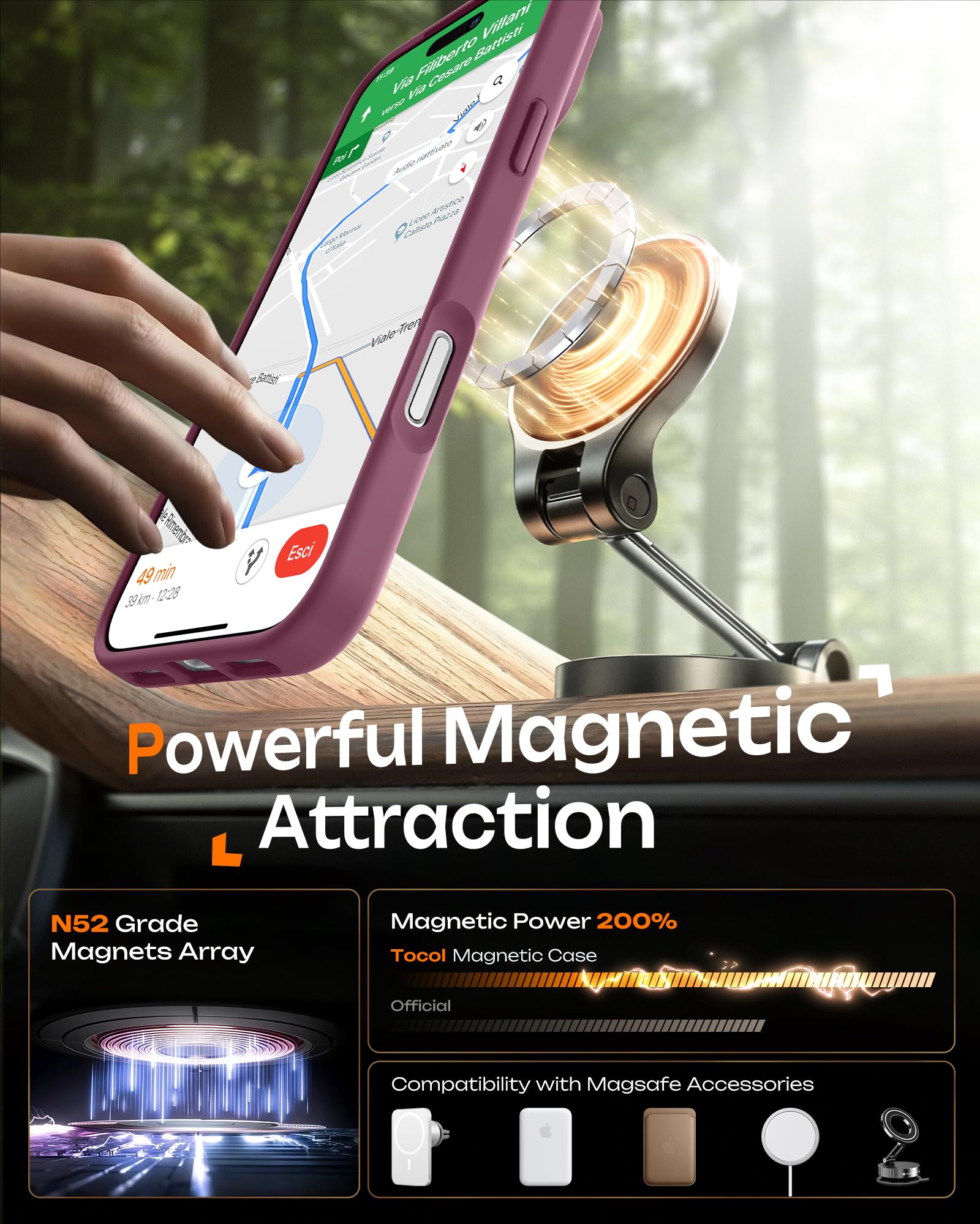 Embedded Magnetic Ring:Upgraded for iPhone 17 Pro Magnetic Case. Built-in magnetic ring never falls off. 18N ultra-strong power, perfect for all your Mag accessories. It holds up well on your Mag car mount, even over strong bumps