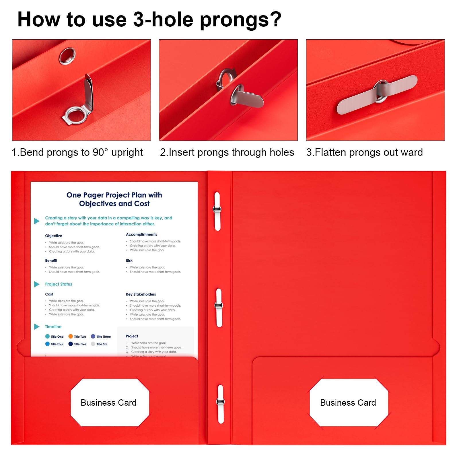 Keep Files Organized: Each folders with prongs feature two pockets and three prongs, allowing you to easily store and manage your documents. Three prongs help keep the document in paper file folders, ensuring your files stay in place.