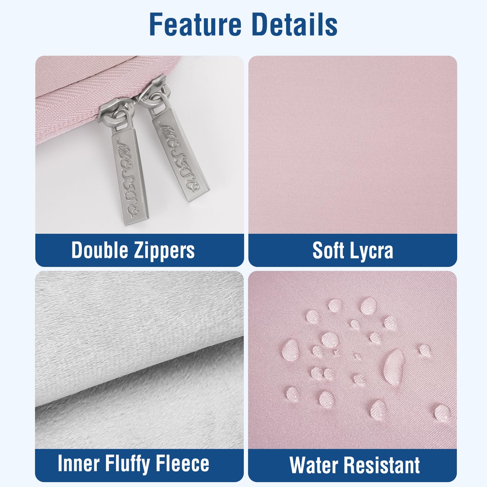 Features a neoprene foam padding layer and fluffy fleece fabric lining for bump and shock absorption and protection of your computer from accidental scratches.