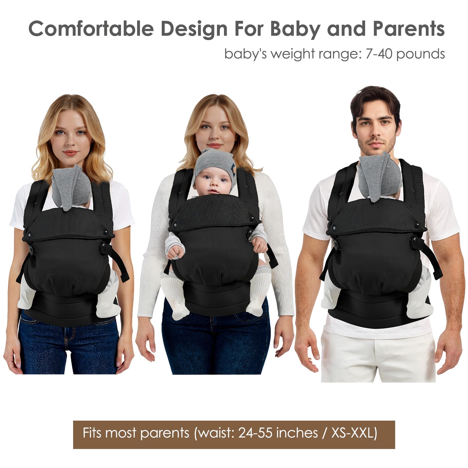 Hands Free and Save Effort: This baby carrier adopts an innovative back cross design that subtly distributes weight for easy, labor-saving long-term use, freeing up your hands for daily activities. It perfectly combines convenience with comfort, making parenting on the go hassle-free.