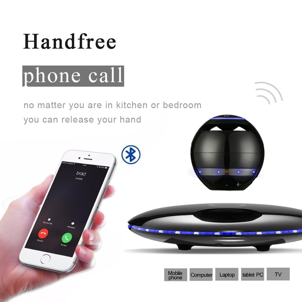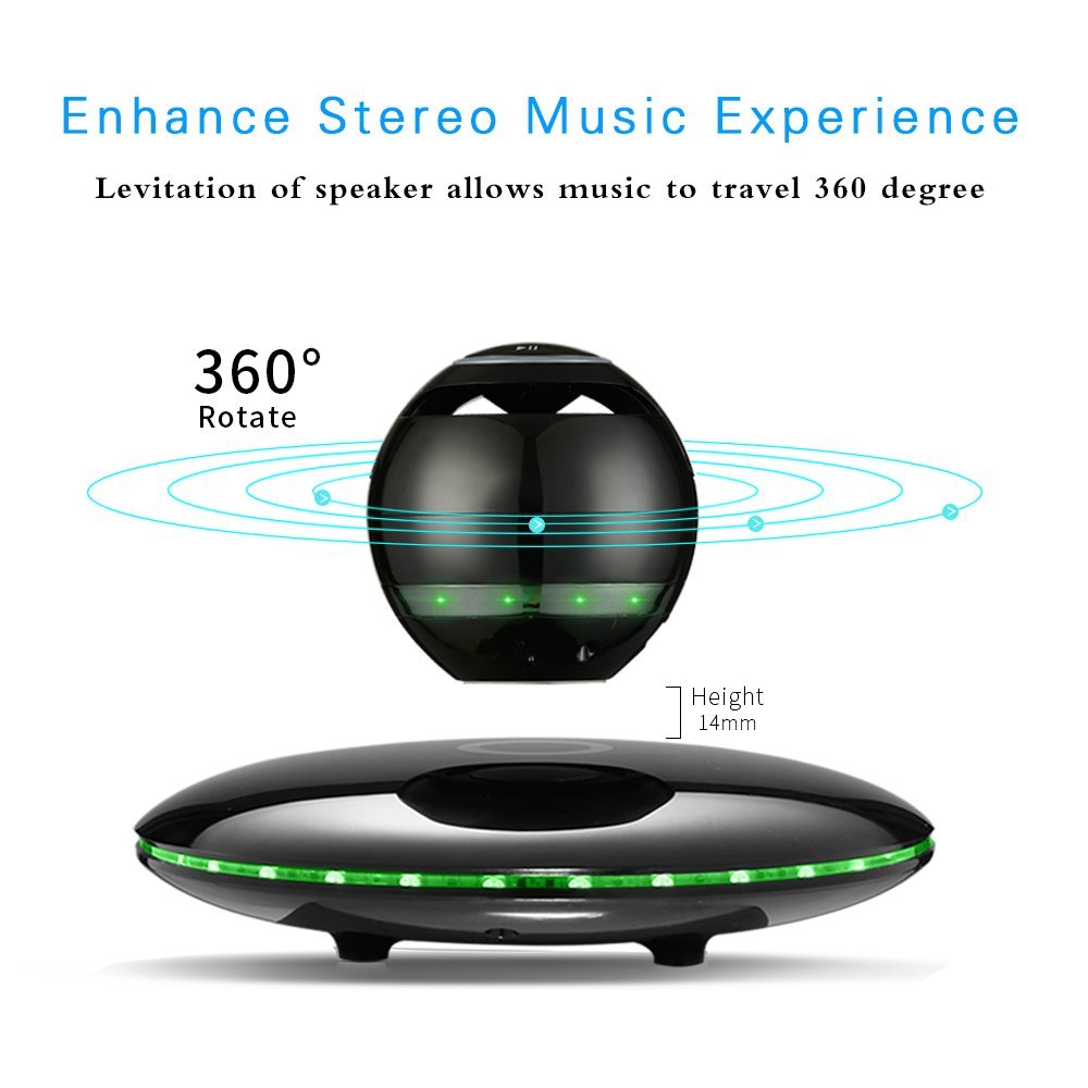 Infinity Orb levitating speaker is not only a unique designed levitating Bluetooth speaker, but also a beautiful piece of artwork. The Infinity Orb levitates in air at 1/2inch height above its magnetic base. The base illuminates continuously different color LED lights. Play music up to 8 hours at 70% volume. It is an awesome high tech gadget and it is also a perfect gift to friends. specification bluetooth: 4.0Wireless range: 10 meters speaker: 3W x 1 battery: 500mah playing time: more than 8 hours continuous (at 70% volume) frequency range: 100Hz 18khz distortion: THD package contents 1x orb 1x base 1x USB cable 1x charger 1xuser manual how to levitate the orb? 1. Please place the base on an absolutely plat surface. If the surface is not Flat and horizontal, the speaker orb can’t levitate normally 2. Connect the power adapter to the base power port. 3. Turn on the speaker orb and pair with smart phone/tablet. 4. Hold the orb with your two hands and put your fingers under the orb to hold tight the orb, move the orb vertically downwards the center of the base. 5. Make the orb approach the center of the base slowly, and please move it towards left and right, or front and back to try to get the levitating point. 6. When you feel a strong force, which is holding the orb from the base, This position is the levitation place.