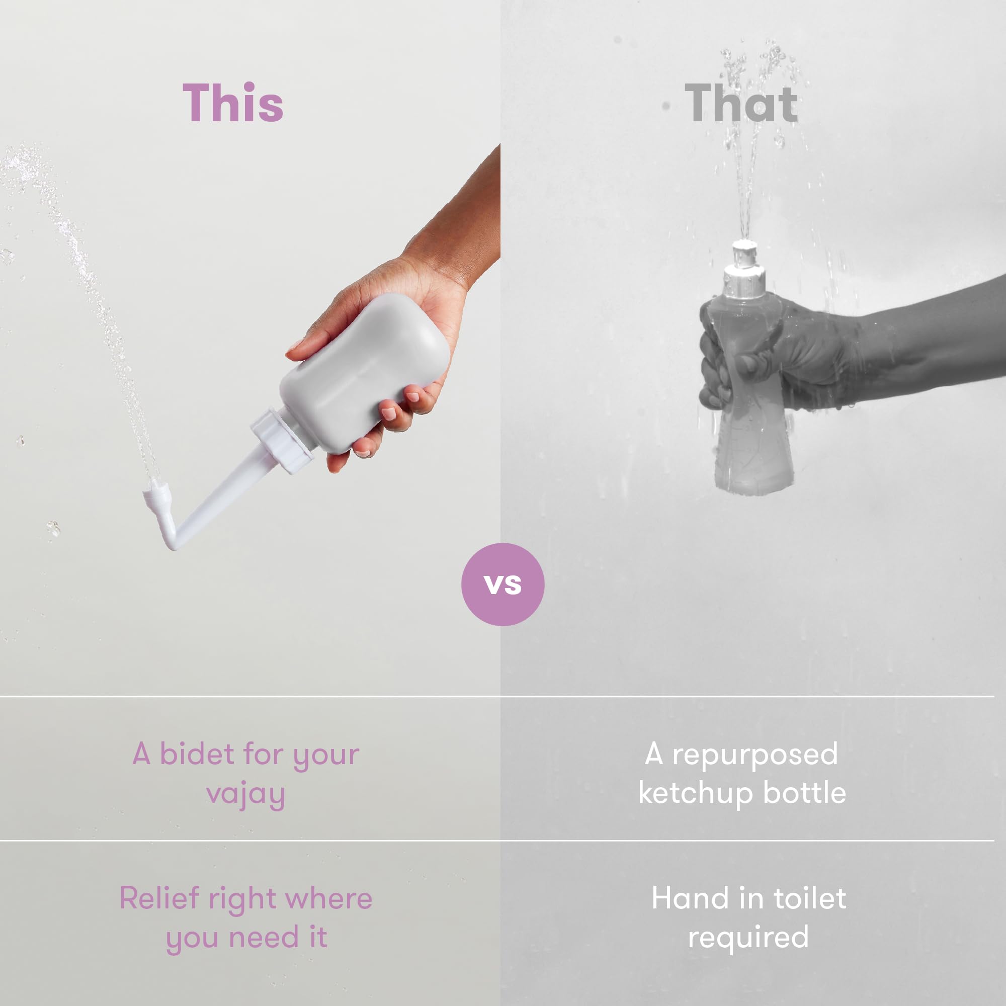 Toss the hospital peri bottle and get this bidet for your vajay. It’s the MomWasher for relief and postpartum care down there.