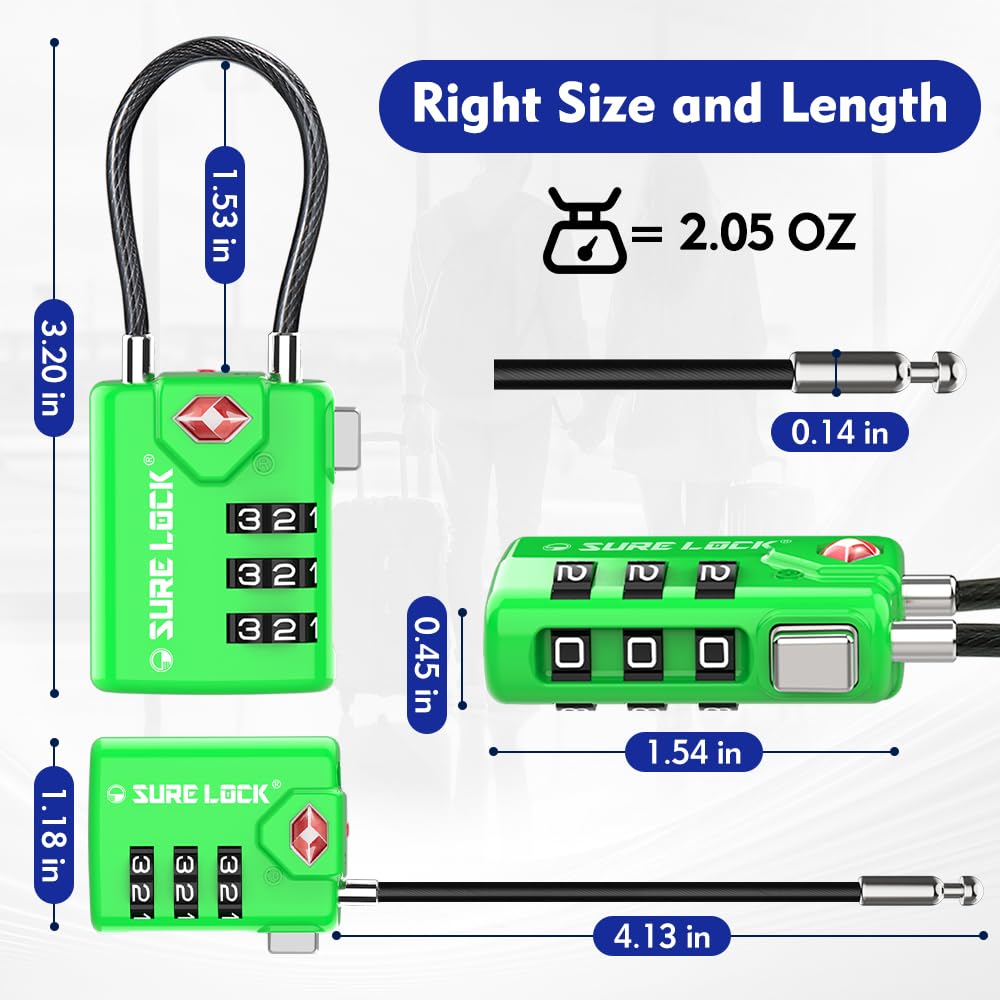 A SECURE LOCK WHICH WORKS WITH NEARLY ANY KIND OF LUGGAGE. Cable locks can secure luggage which steel shackle locks can not. Pellican cases, gun cases, equipment cases, etc. can all be locked easily and safely with our flexible cable. At an ideal lenght of 4 inches from end to end and a closed lenght of 1.15 inches, SureLock's cable is the ideal size for your travel security needs.