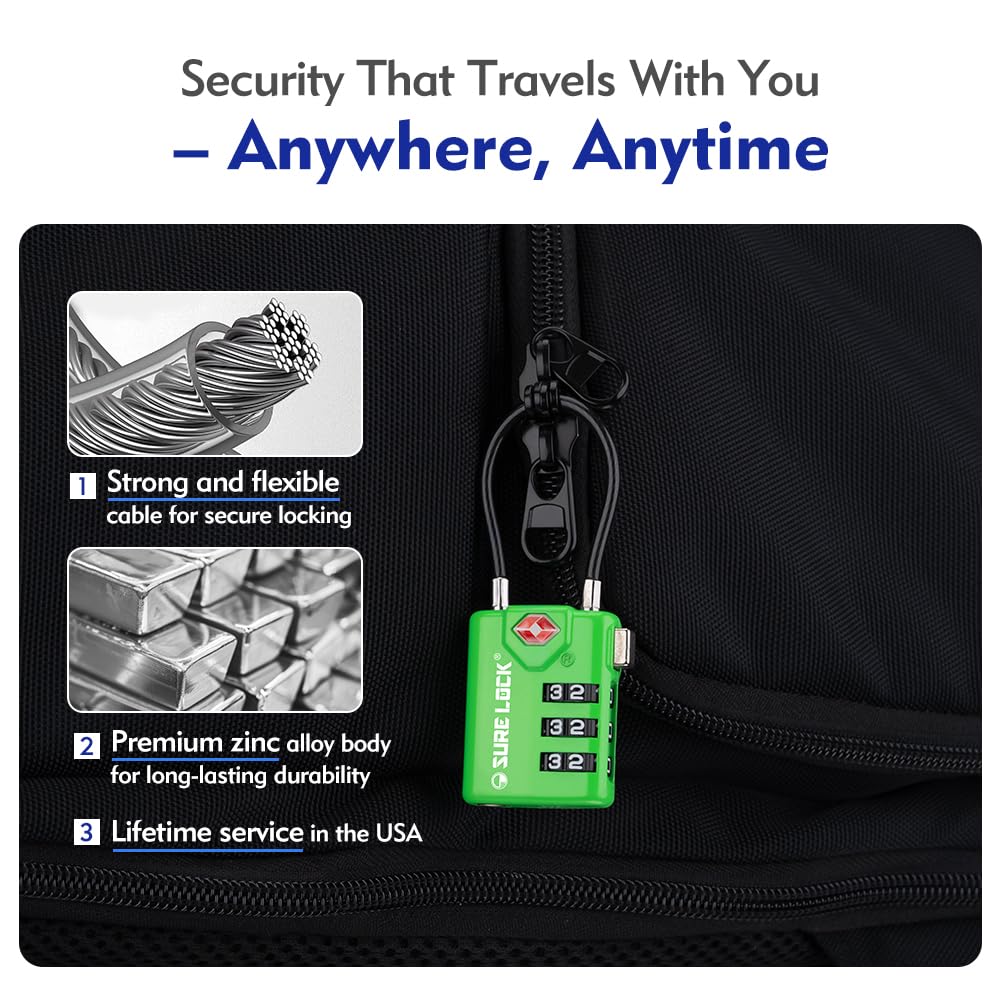 THE MOST DURABLE LOCK ON THE MARKET. SureLock uses an ultra tough alloy body to protect our locks from the harshest of baggage handling. Our hardened stainless steel internal lock mechanisms won't rust or freeze up even after years of use. Put our locks to the test. We back them with a complete money back guarantee.