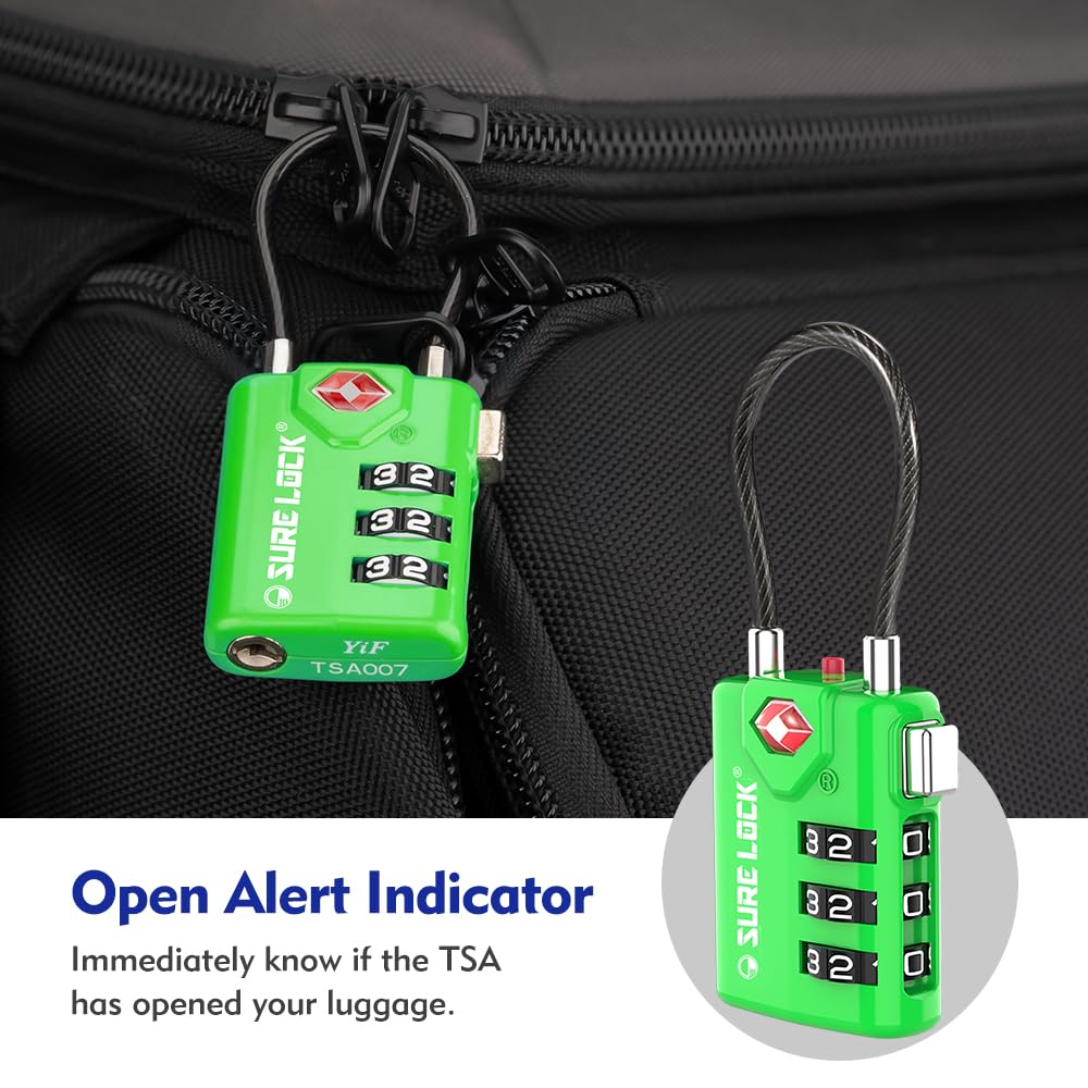 PEACE OF MIND WITH AN INSPECTION INDICATOR. Know if your luggage has been inspected as soon as you pick it up at the airport with our pop-up inspection indicator. If the TSA has opened your luggage, a button will pop out of the top of the cable lock. You'll know to double check your luggage to make sure nothing has gone missing while you're still at the airport instead of at your hotel or final destination.