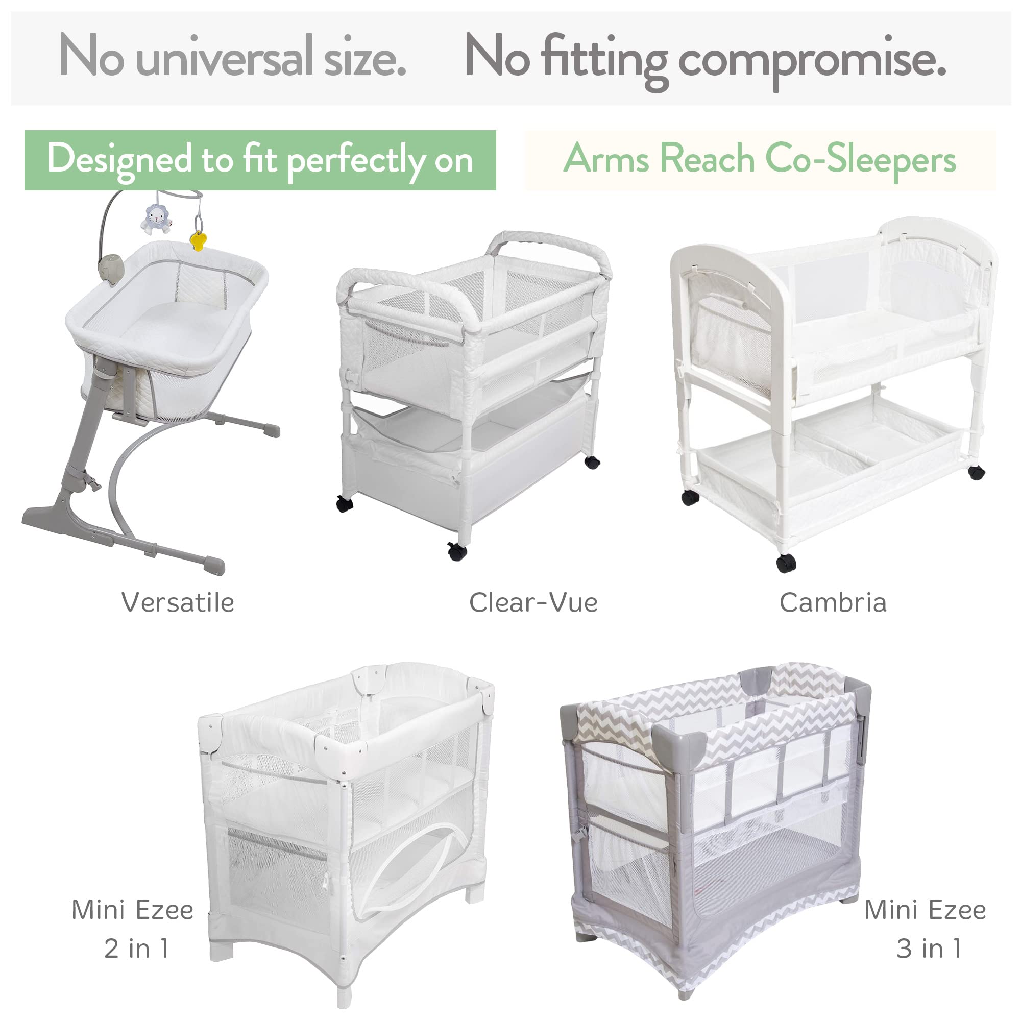 ✔ PERFECT CUSTOM FIT – EASY ON, WON’T SLIP OFF: Every Joey + Joan bassinet sheets fitted fits SPECIFIC MODELS, so they easily slip onto your baby mattress, with ZERO WORRY THEY’LL ACCIDENTALLY SLIP OFF over baby’s head. These mini sheets are compatible with Arms Reach Co Sleeper Bassinet Versatile, Clear Vue, Cambria and Mini Ezee models only and NOT with Ideal Ezee