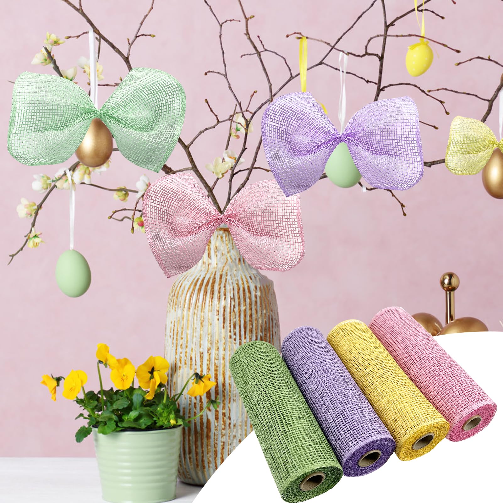 Easter Decorations Poly Burlap Ribbons: You will receive 4 rolls Easter spring poly burlap rolls for wreaths, which are very practical for making a large holiday wreath as you like. The Easter poly burlap mesh ribbon are designed with bright and beautiful colors, let the ribbons look more elegant and attractive, help you to create pretty decorative effect