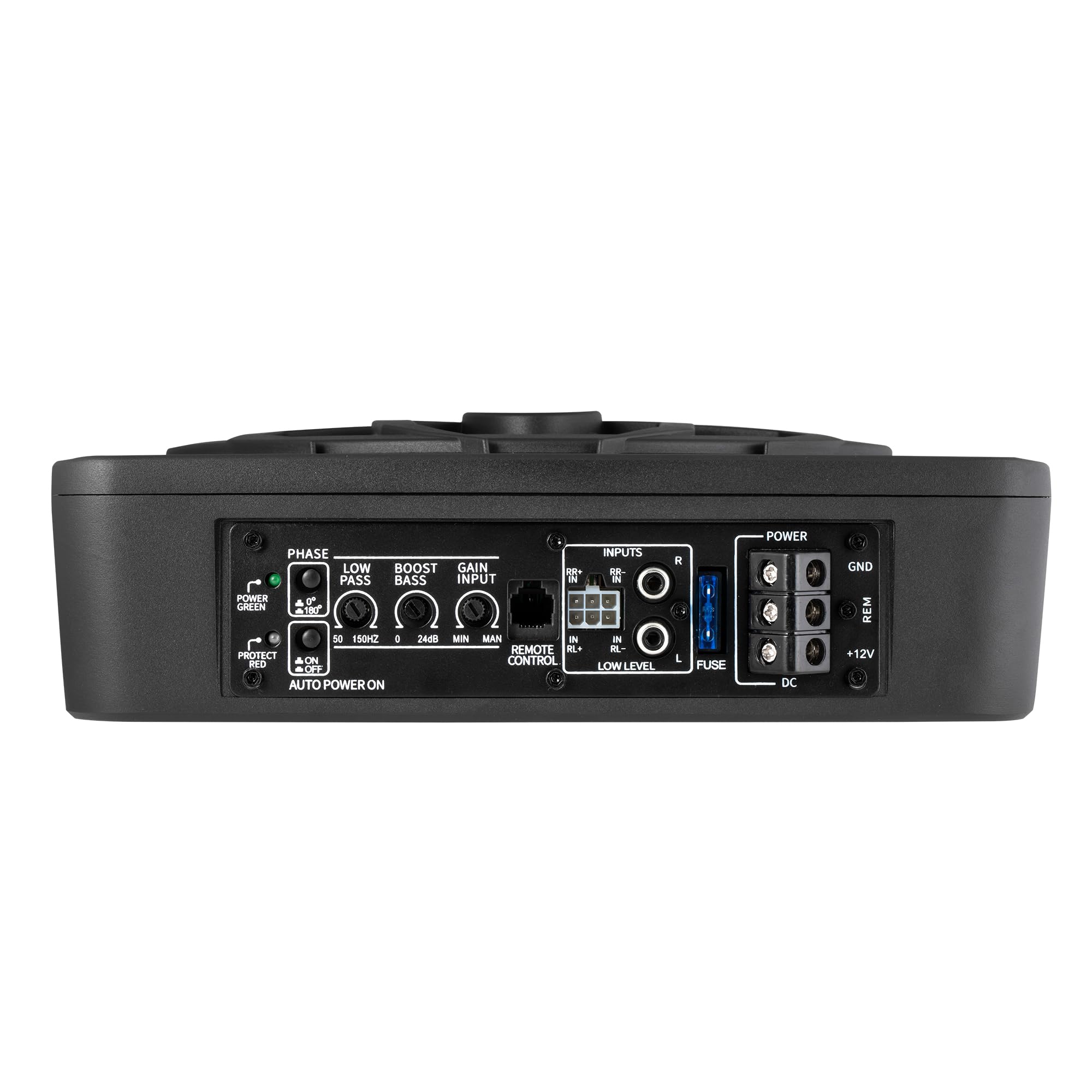 Low Pass Filter: 50Hz - 150Hz, Bass Boost: 0 - 12dB @ 45Hz, Built-in Sub-Acoustic Filter Load @ 20Hz, Total Harmonic Distortion (THD): < 0.4%, Rated Fuse: 15A, Peak Power: 800 Watts, RMS Power Handling: 220 Watts, Impedance: 4 Ohms Frequency Response 20Hz - 500Hz, Signal to Noise Ratio: >90dB , Low Level: 300mV, Input Sensitivity, High Level: 0.9V, Dimensions (inches): 13.5"(L) x 10.2"(W).Thickness: 3"