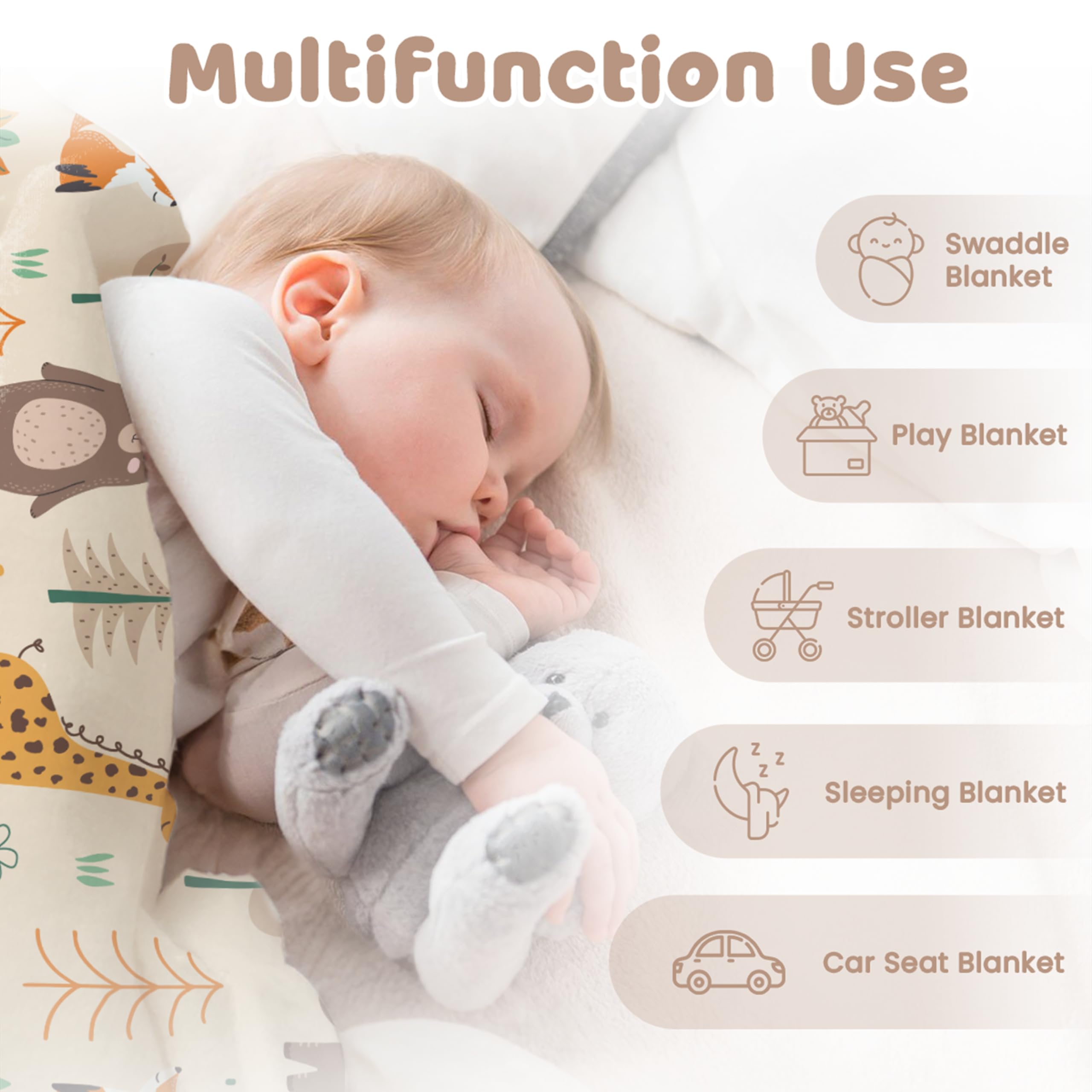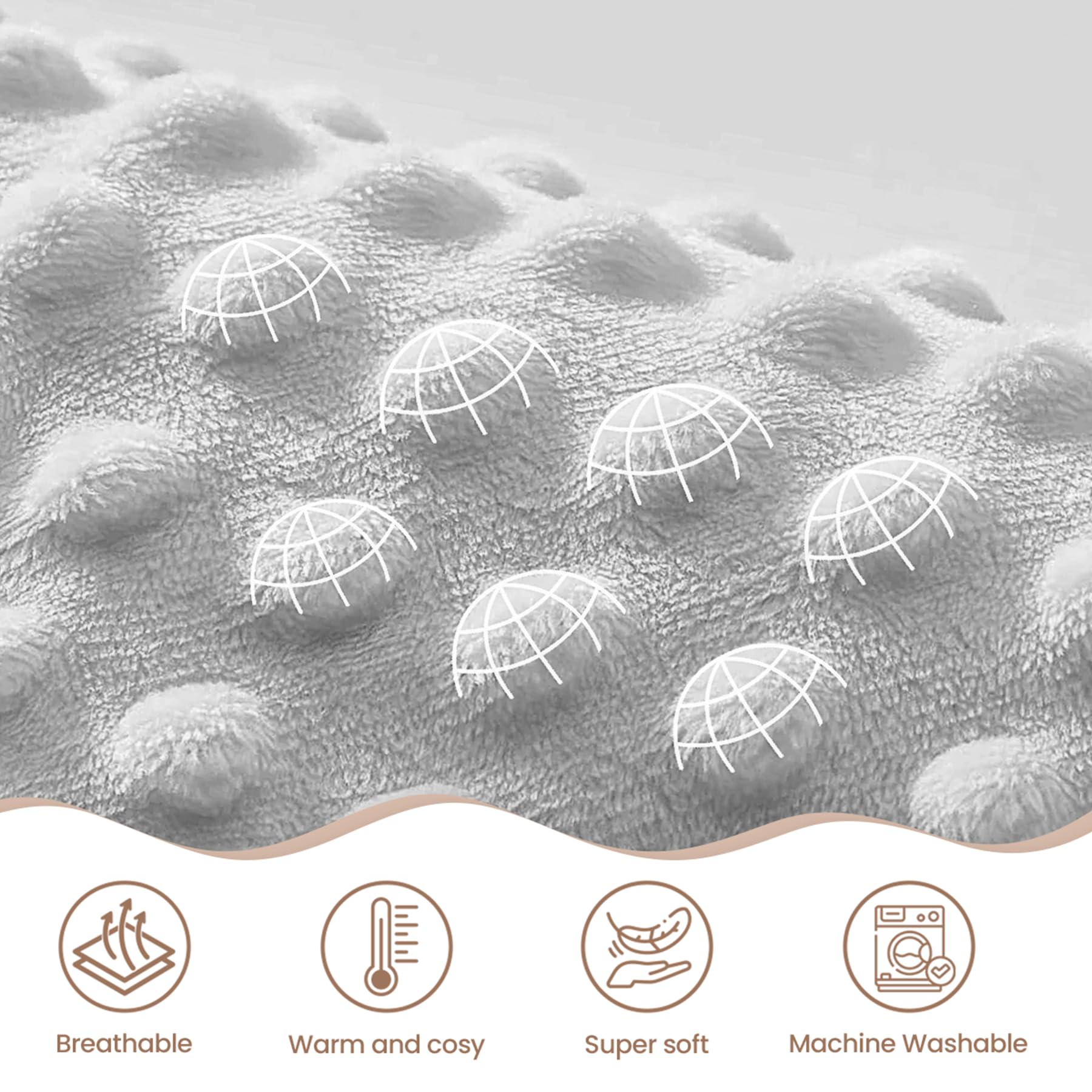 Comfortable material: the baby blanket is light, ensuring your little one stay comfortable all year round; one side features a smooth surface while the other is 3D dotted