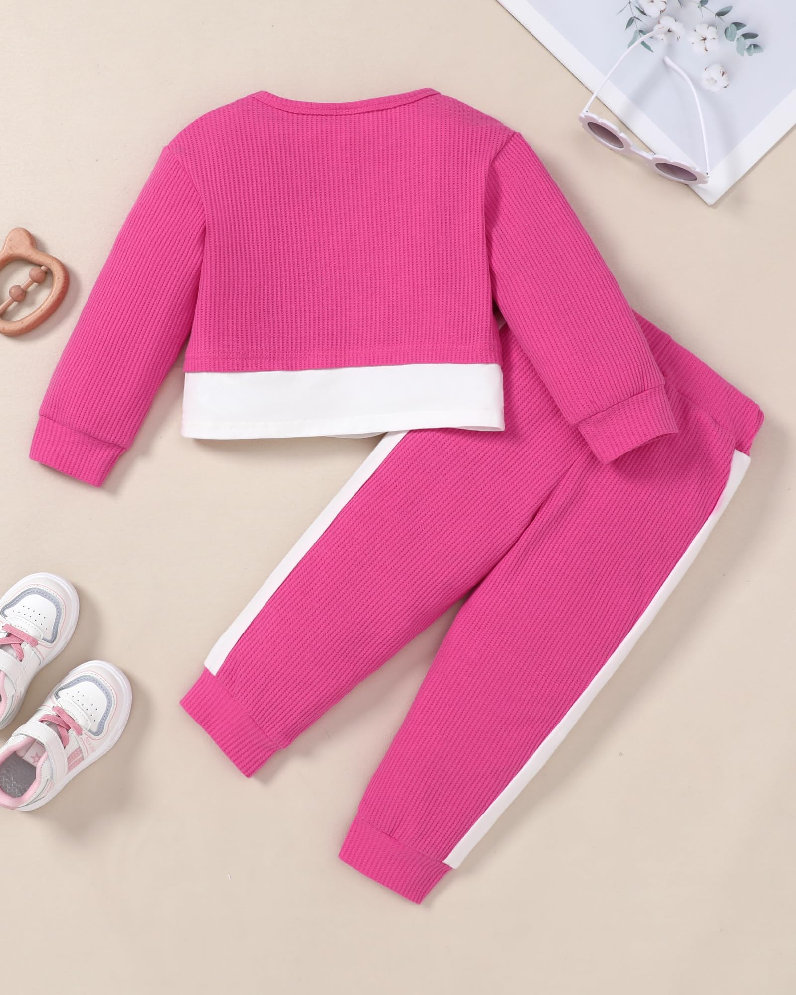 Cute Toddler Girls Sweatsuits -This Toddler girl outfits features a round neck design, loose hem, and elastic waistband pants, which are very loose to wear and give children more freedom.