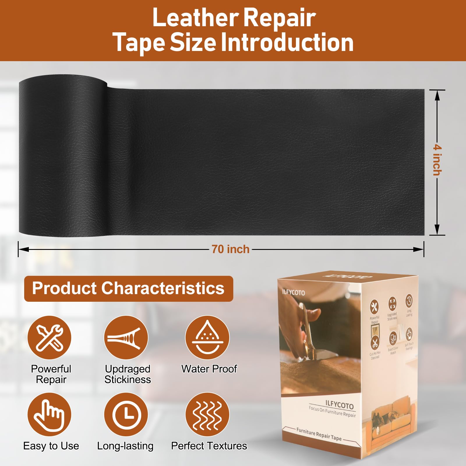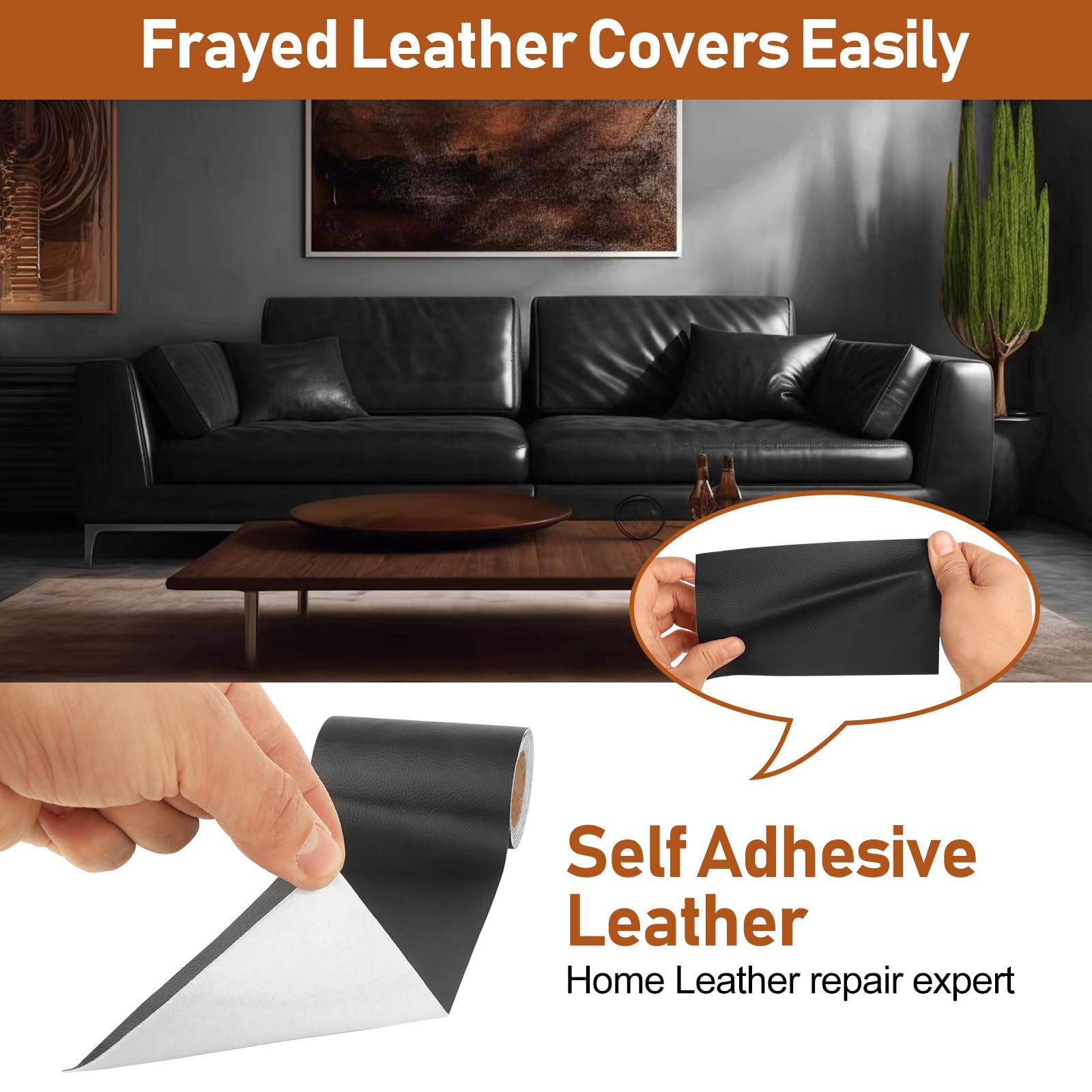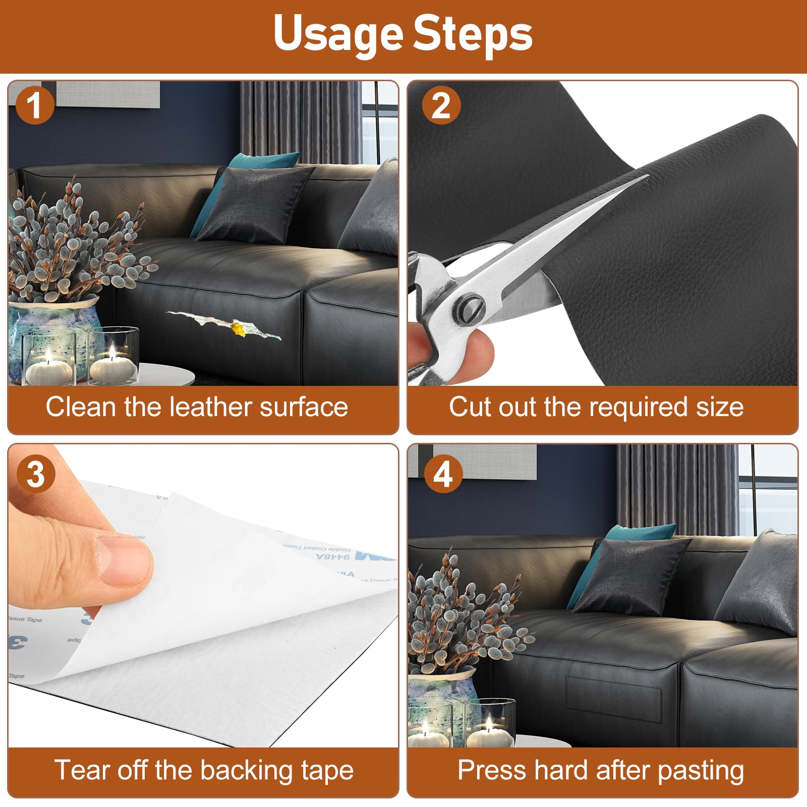 Leather Repair Patch - Leather patches no tools, glue, or waiting required; Backing with durable adhesive makes your sticking more strength, not easy to fall off after fixing on damaged leather or vinyl surface; Easy to use, You just need to follow the 4-step process: Clean→Cutting→Peel→Stick! Graphical stickers are included in each package to meet your DIY needs;