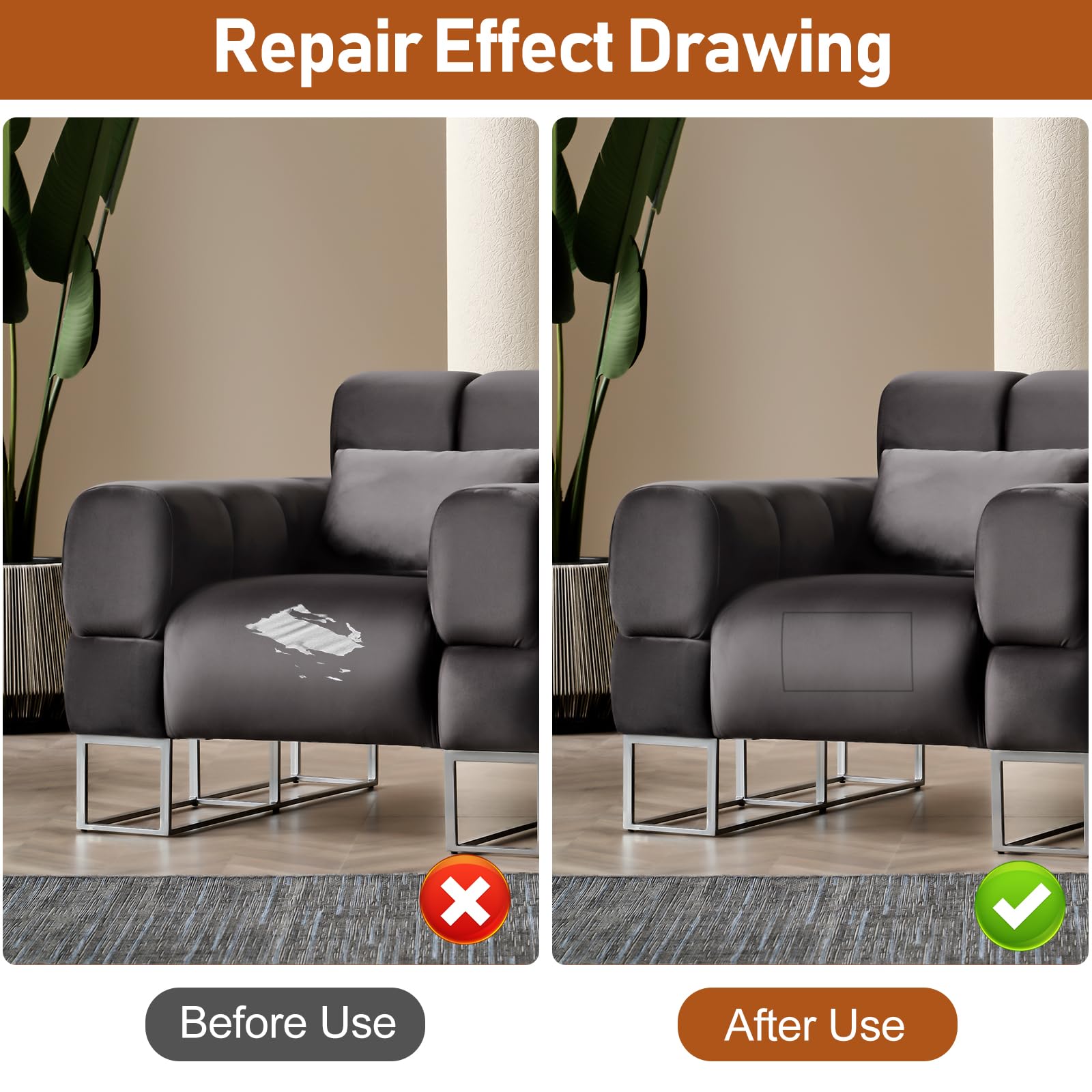 Premium Vinyl Material - Leather repair kit for furniture is made of high quality leather, soft, wear-resistant, high temperature resistant, waterproof, scratch-proof and not easy to break, it brings safety to your health and life; Our leather repair patches come in classic textures and colors and are effective at restoring damaged leather furniture;