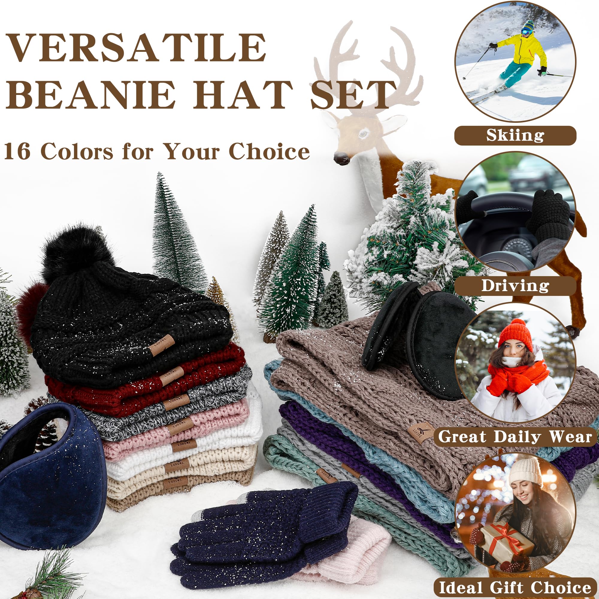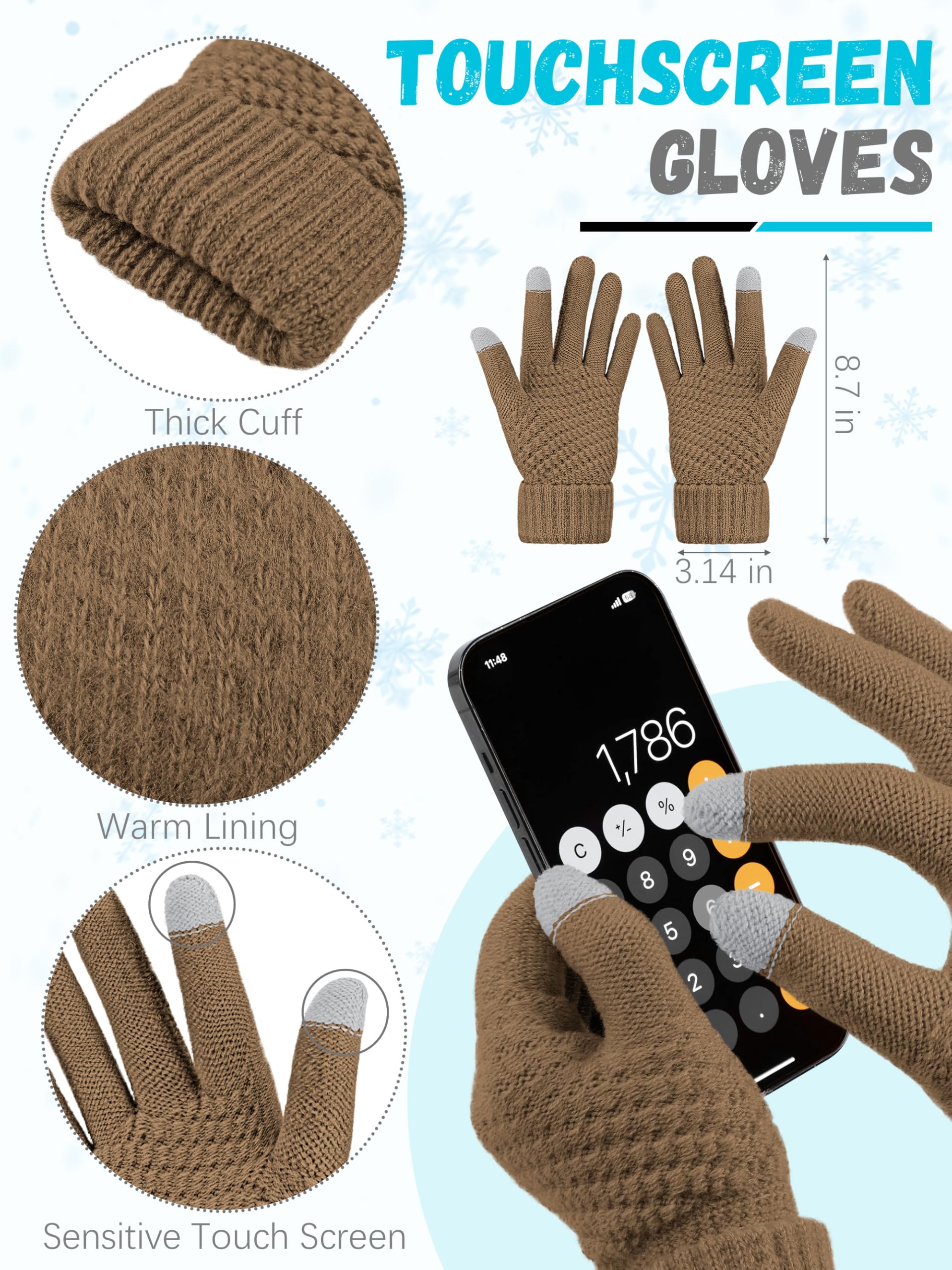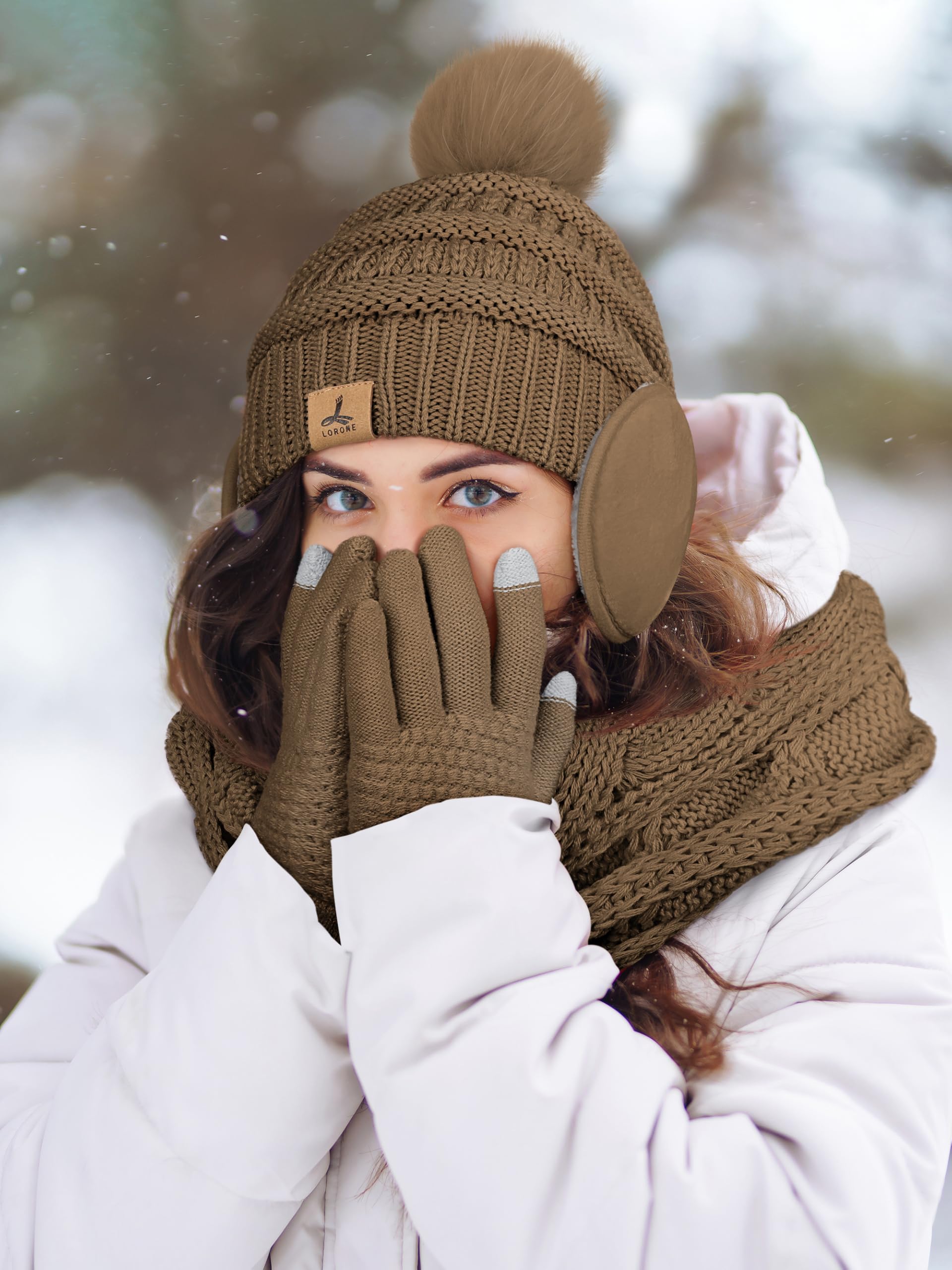 Super Value Set - Stay fashion-forward and comfortably warm this season with our women's beanie and glove set. Equipted with 1 winter hat, 1 winter scarf, 1 pair of touchscreen winter gloves, and 1 winter ear warmer.