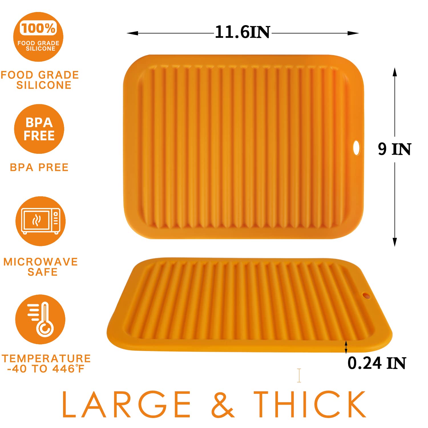 🍳【FOOD-GRADE SILICONE HOT PADS】: Our orange trivets for hot dishes use high-quality food-grade silicone that is 100% BPA-free and built to be long-lasting and flexible; super safe to grab a hot pan or dish. The size is 9x11.6 inches, suitable for any style pan or pot.