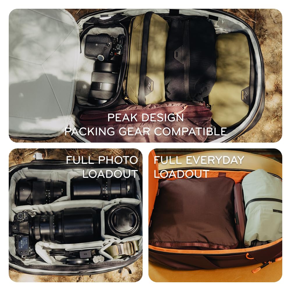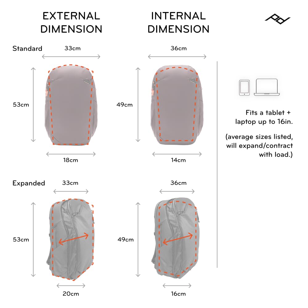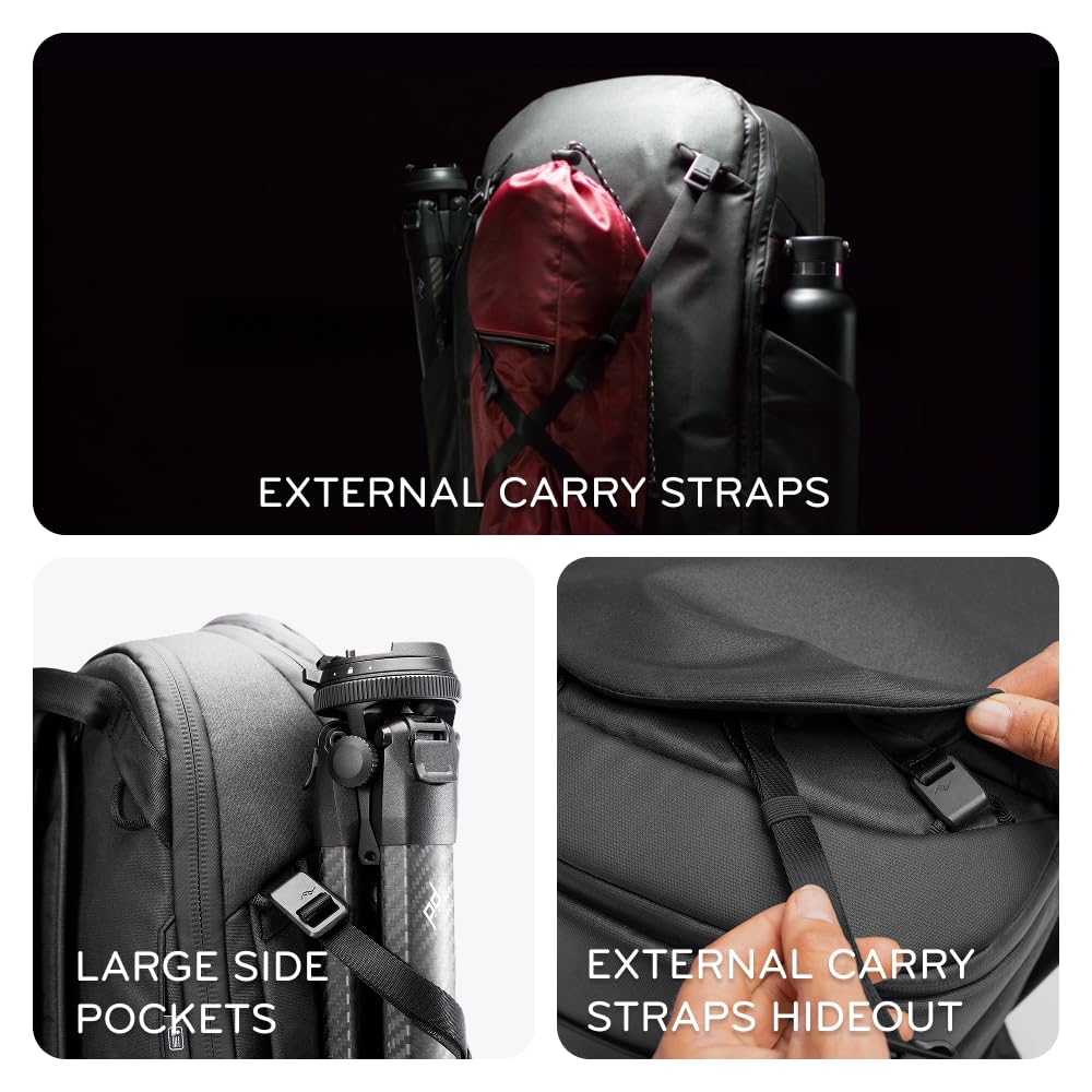 DESIGNED TO ADAPT: Expandable from 27L to 33L, this carry on approved pack adjusts to fit your load. Side pockets expand to hold bottles or tripods, while a large rear hatch and subdivided top pocket keep your essentials organized and easy to reach.