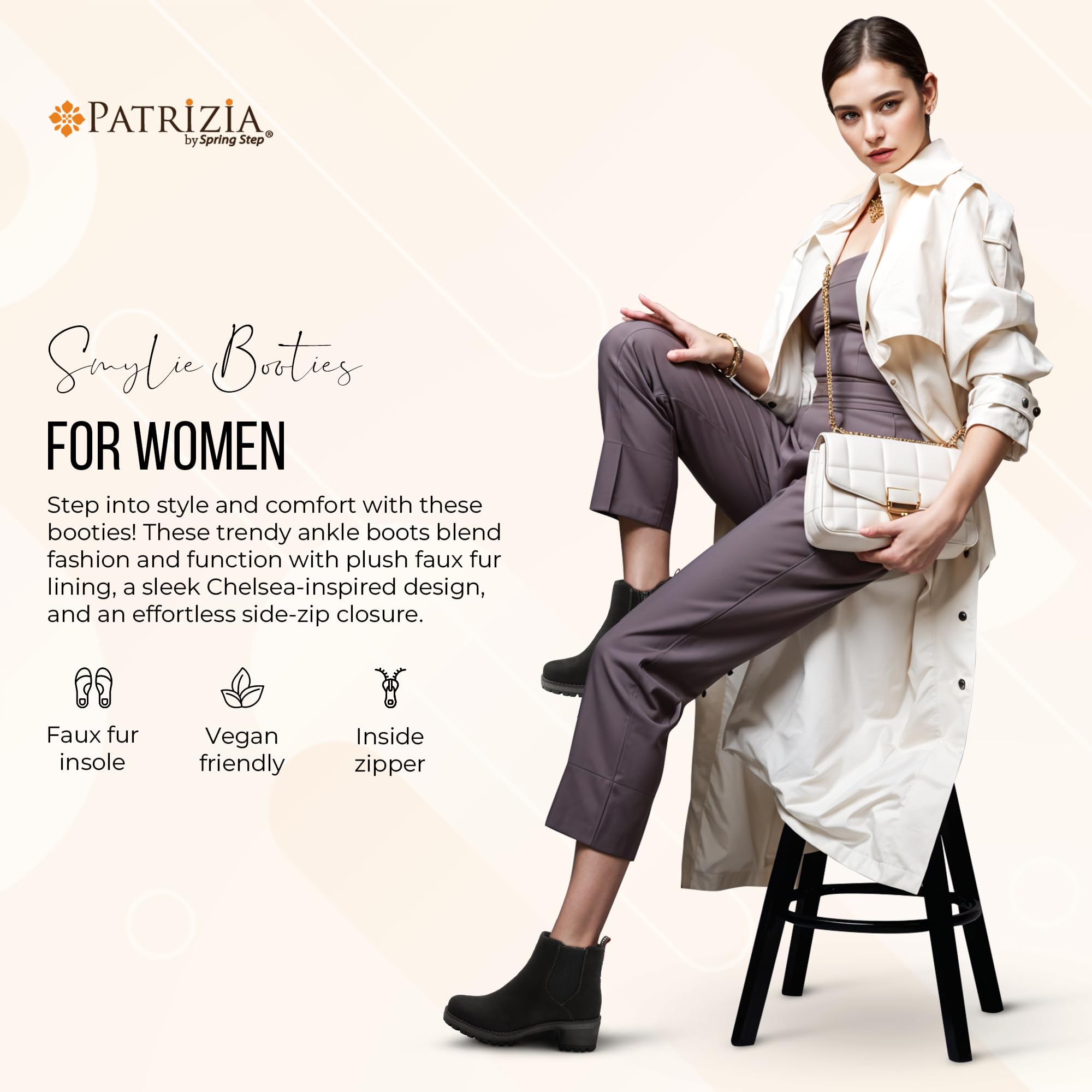 πππππππ ππππππA ππππππππ πππππ: The Patrizia Smylie slip on ankle boots for women brings timeless Chelsea boot style to your shoe collection. It has a sleek and elegant look with a patterned stretch elastic gore for added flair. Perfect for casual or dressy occasions, it complements any outfit.
