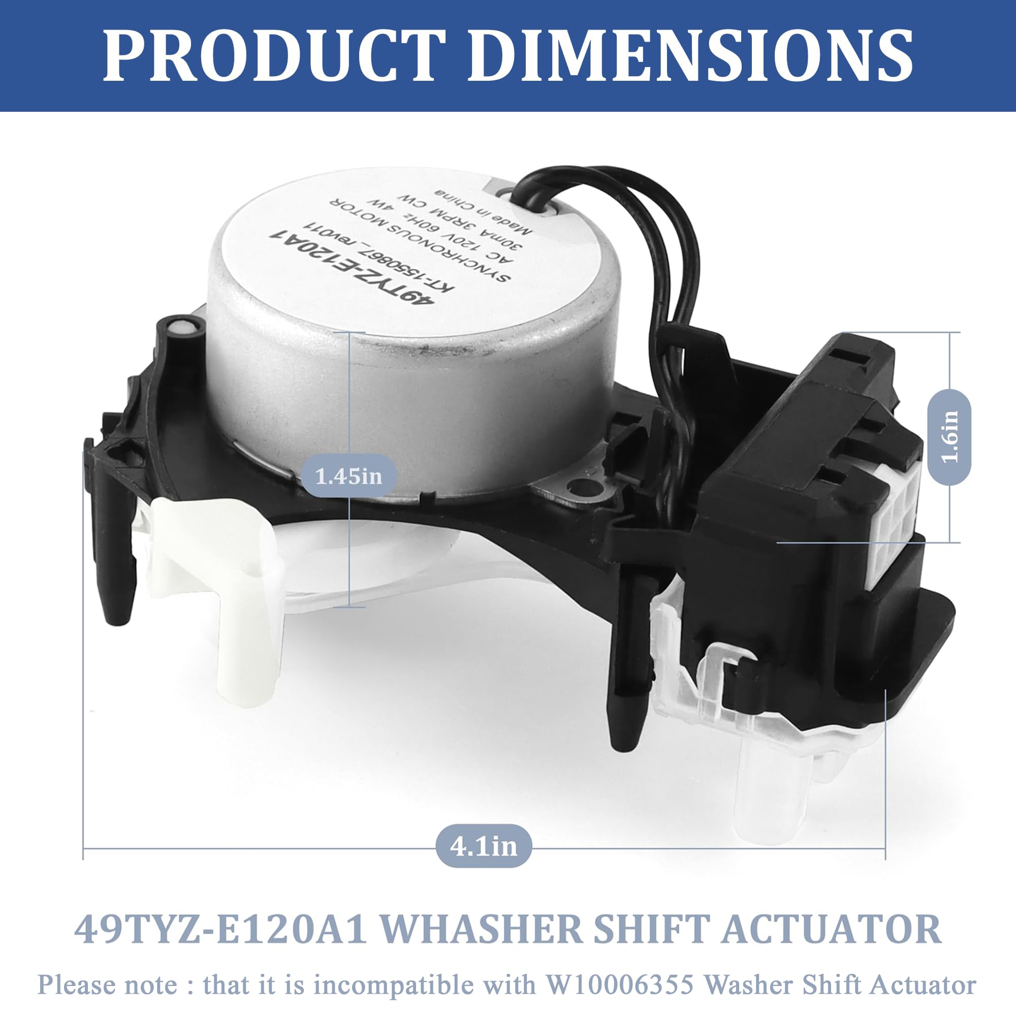 Main Function: TOMOON W11481722 W10913953 washer shift actuator to turn wash drum from mixing to spinning cycle. Package includes 1x W10913953 washer shift actuator, synchronous motor, AC 120V, 60Hz, 4W, 30mA, 3RPM, CW, 4.5in x 3.5in. Please note :that it is incompatible with W10006355 Washer Shift Actuator!