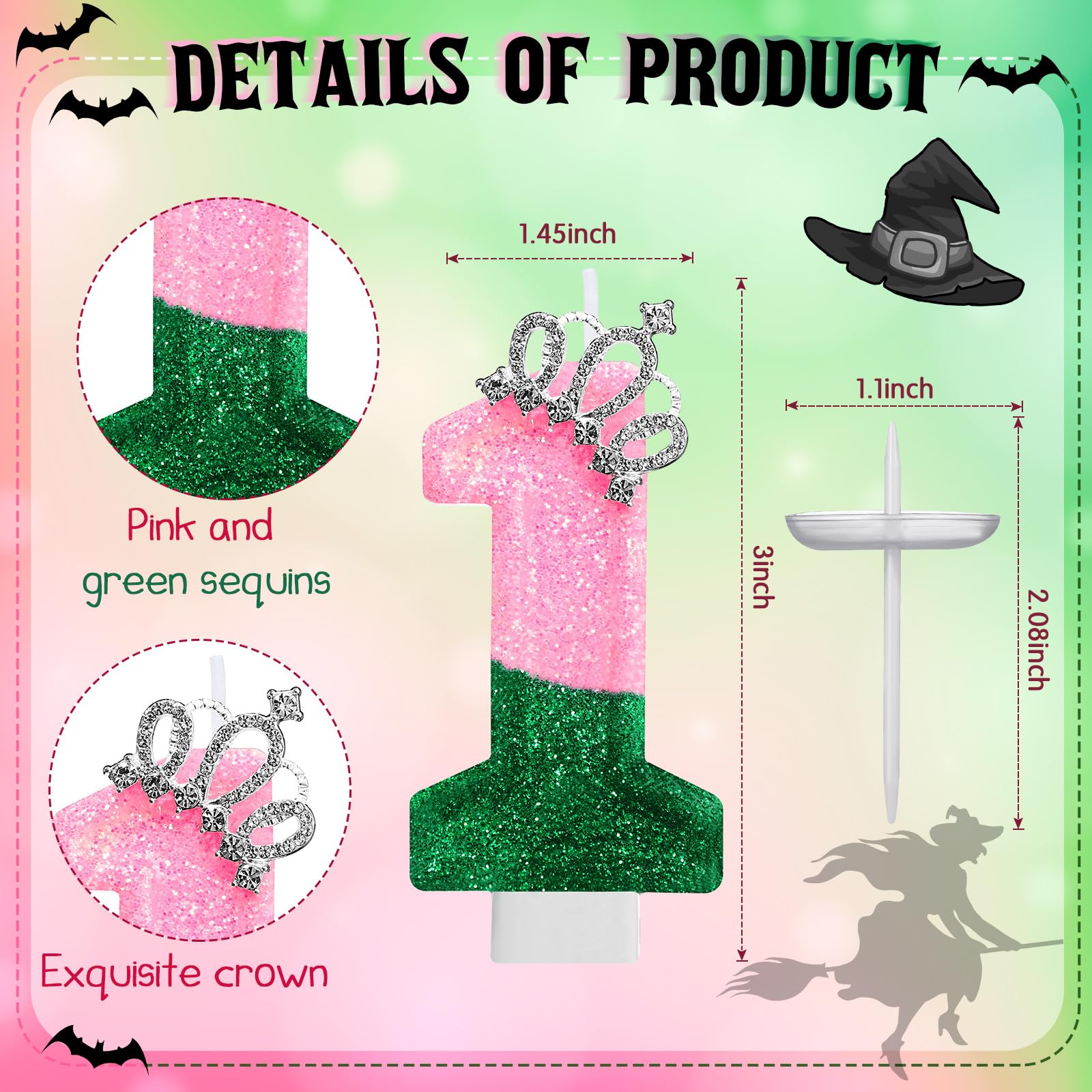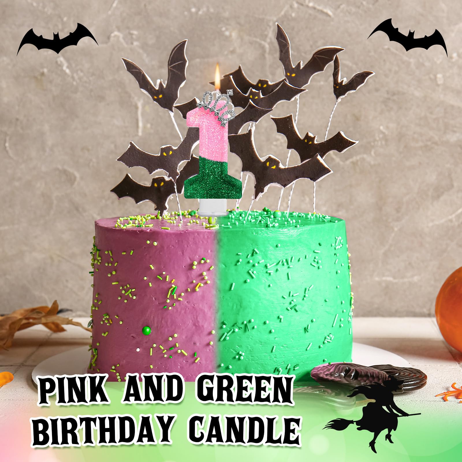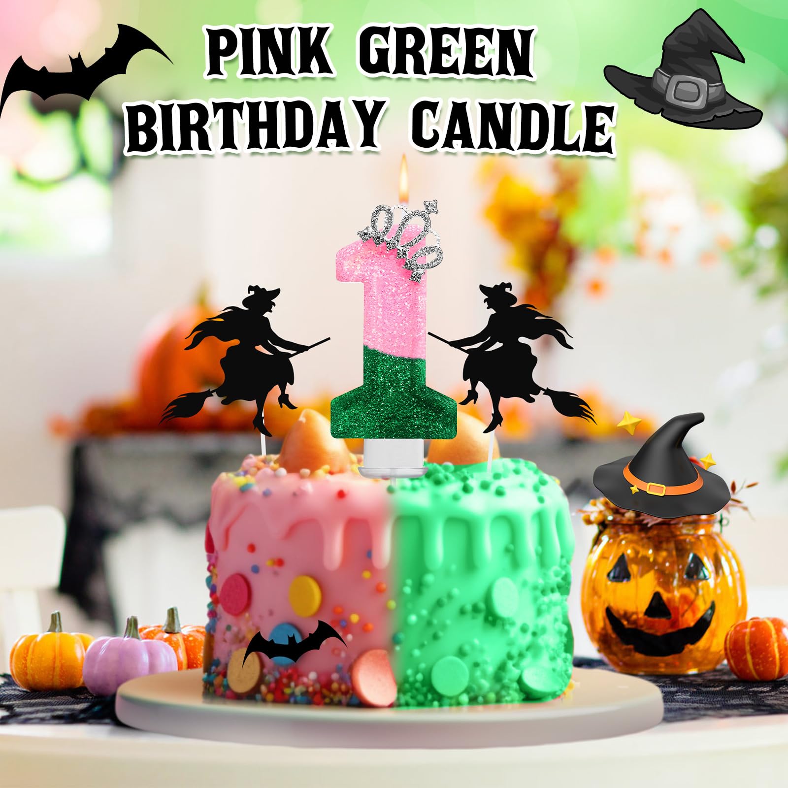 Package Information: the package comes with a pink green number 1 candle, celebrate your baby's milestone with the witch candle; It's designed for first birthday parties, creating a lovely, witch themed event; Make their birthday special and memorable with this cute witch themed candle