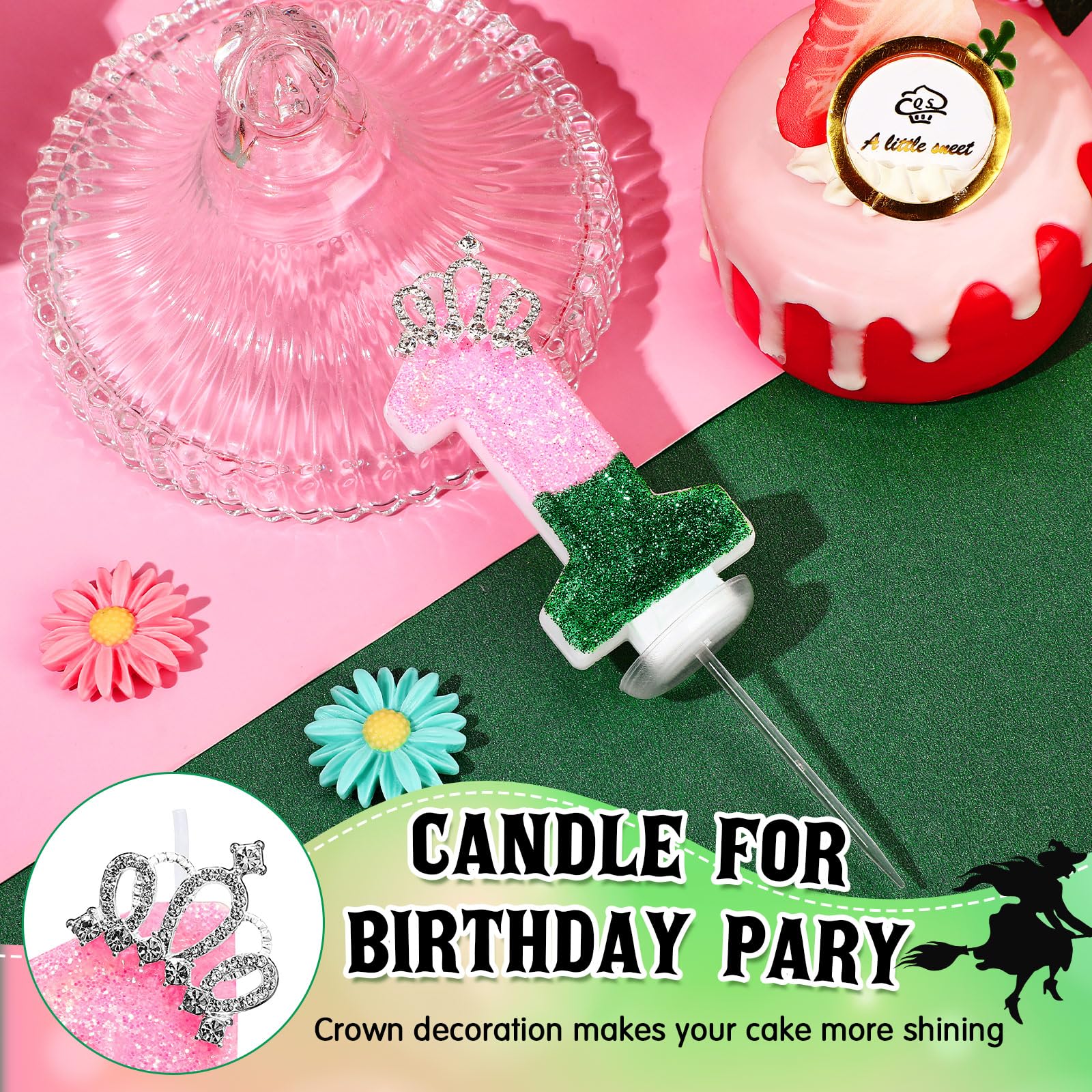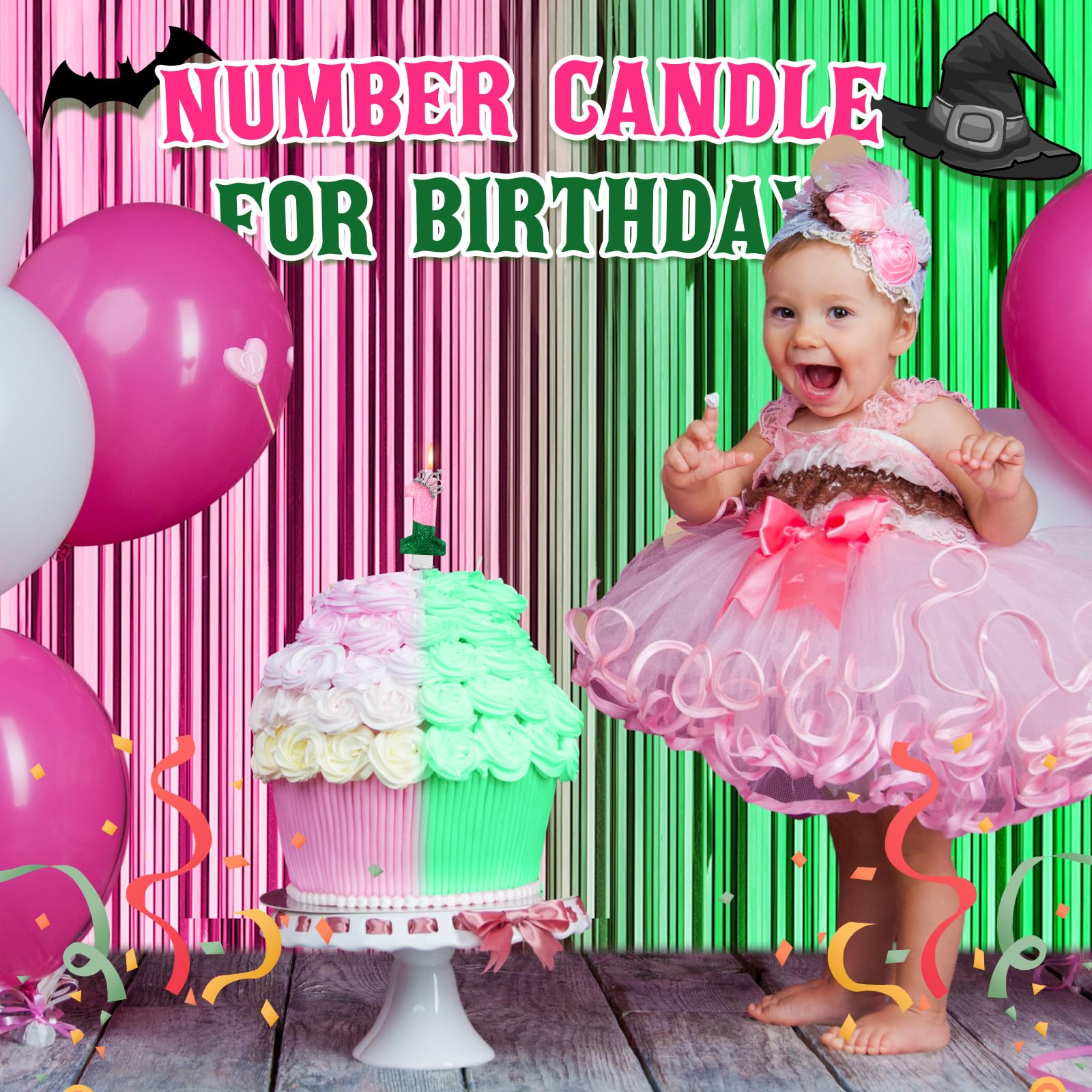 Witch Theme: embellished with a delightful pink green first birthday decor, this pink candle stands out, adding a cute and eye catching effect to the party decor; The vivid pink green and green colors provide an adorable decorative touch and enhance the sweet atmosphere of your girl's party