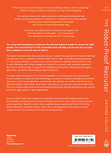 The noise and transparency created by the internet makes it harder to recruit the right people. This second edition will help you become the recruiter that candidates trust and want to talk to. The Robot-Proof Recruiter shows you how to use a human-first approach to hiring that will help you grab and hold a candidate's attention better than a robot! It contains essential guidance on overcoming obstacles, including how to recruit without an existing online presence, how to work effectively with hiring managers to improve the outreach and candidate experience, and how to use technology to support the candidate's journey from initial outreach, through to application, successful onboarding, and later to alumnus. The second edition covers the unexpected impact of the COVID-19 pandemic on recruiting, and how using unique human qualities in conjunction with technology can enhance employer branding and candidate experience. Full of expert guidance, practical tips and updated case studies, this book explains what works, what doesn't and how you can stand out and recruit effectively. The Robot-Proof Recruiter is an indispensable book for all recruitment professionals and HR practitioners who want to recruit the right people for their organization.