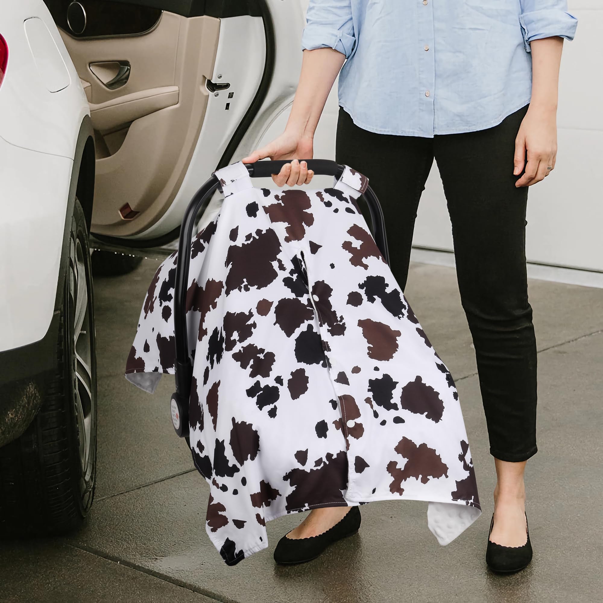 DOUBLE LAYER FABRIC: Our baby carseat covers are made of double-layer fabrics. The outside is durable polyester with cute patterns; the inside is soft minky with warm pile. It's not too thin or too thick for year-round use, and with a breathable window